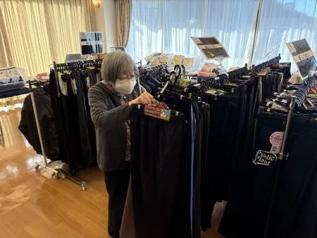 会場には色とりどりの冬物が並び、「これ似合うかしら」「あったかそうだね」と、お客様同士の会話も弾み、和やかな雰囲気に包まれました。実際に手に取って素材を確かめたり、スタッフと一緒にコーディネートを選んだりと、普段とは少し違う“お買い物の時間”を楽しんでいただけたようです。