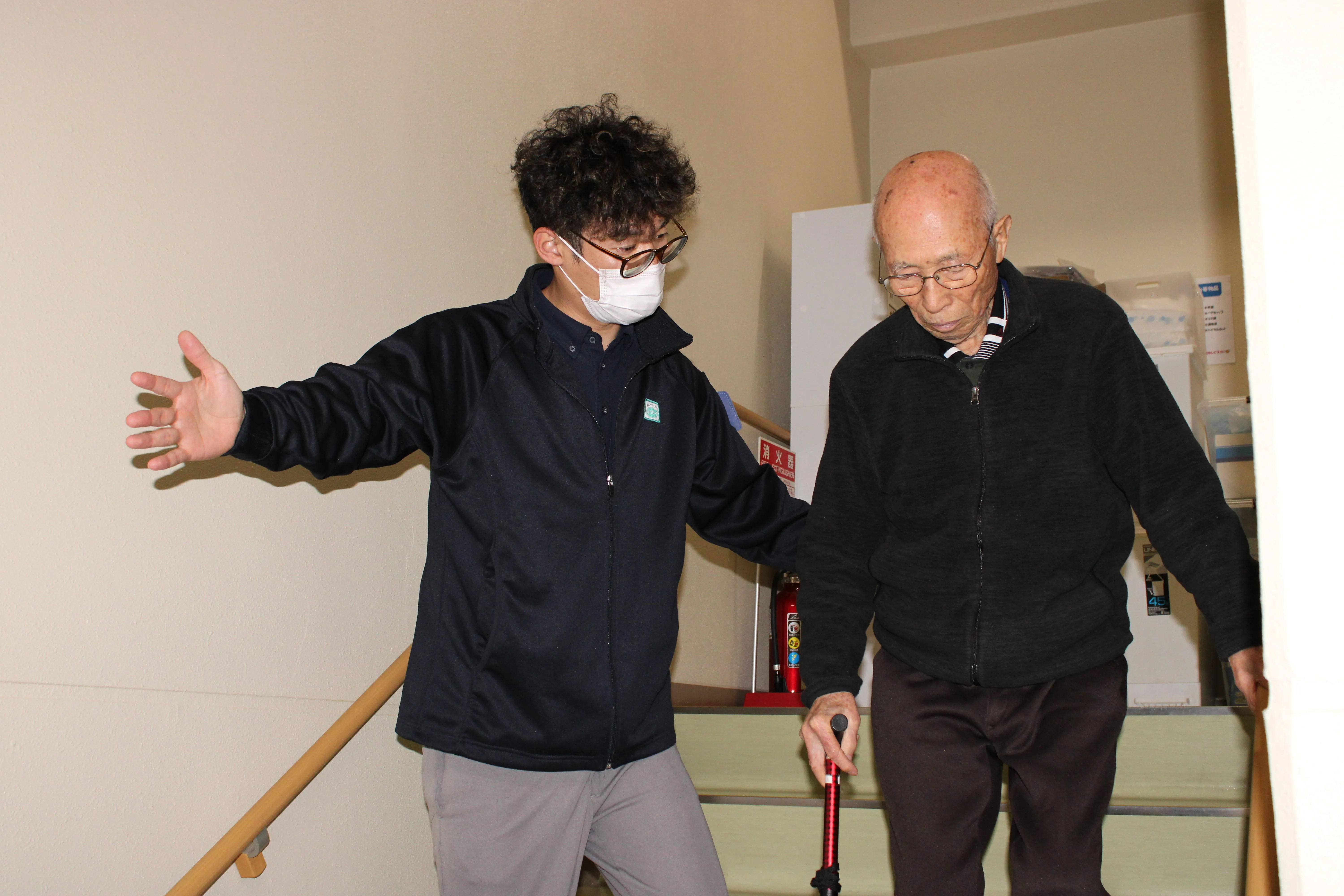 訓練では、暗い中でも安心して避難していただけるよう、非常灯や誘導灯の確認を行い、歩行や車椅子での移動が必要な方への対応についても、スタッフ同士で声を掛け合いながら進めました。お客様の体調やご様子に配慮し、落ち着いた雰囲気の中で訓練を行うことができました。