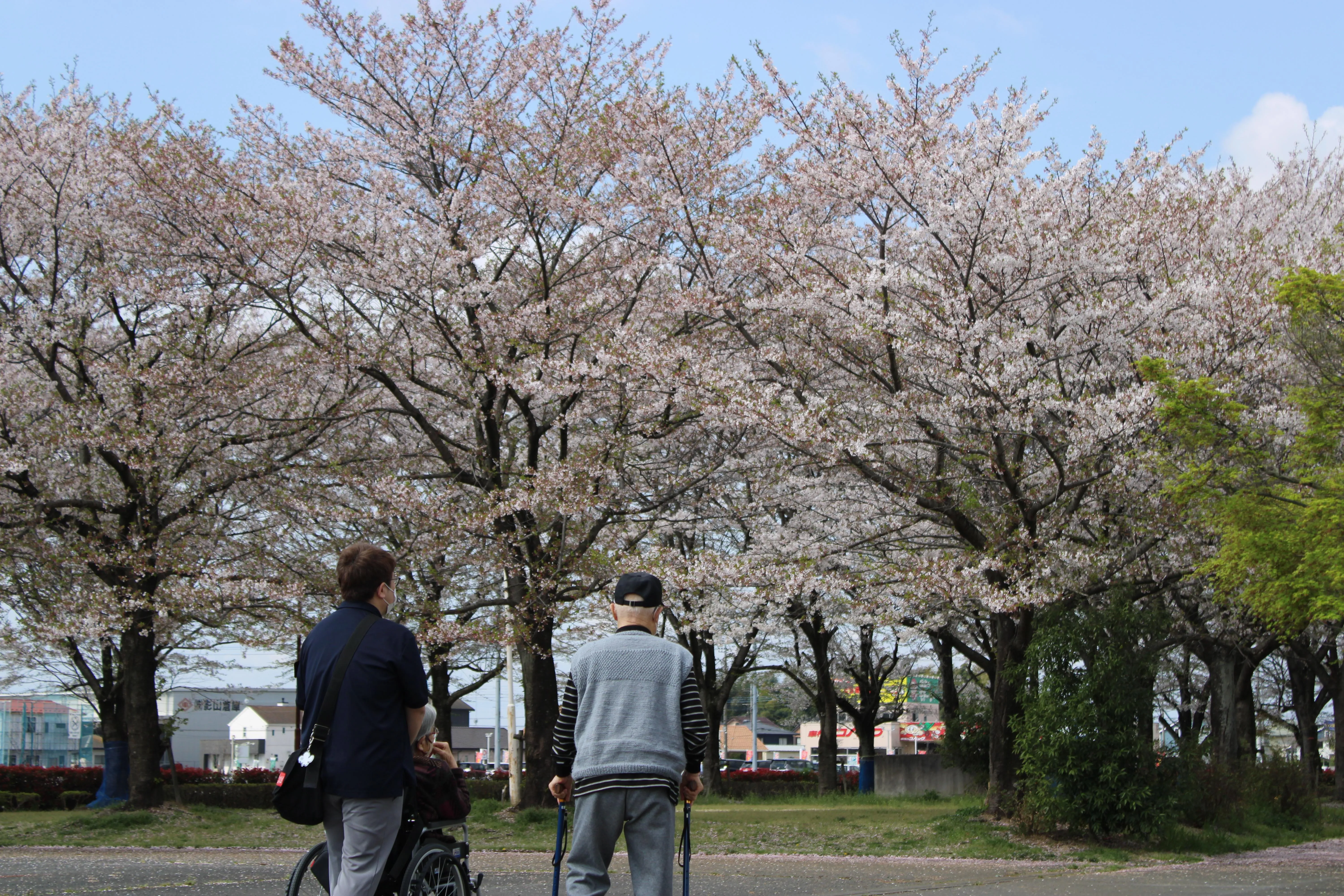 満開の時期は過ぎておりましたが、やわらかな春風に乗って舞い散る桜が、どこか趣深い景色を演出してくれました。ひらひらと舞う花びらに「これもきれいだね」と、皆さま足を止めてご覧になる場面も見られました。