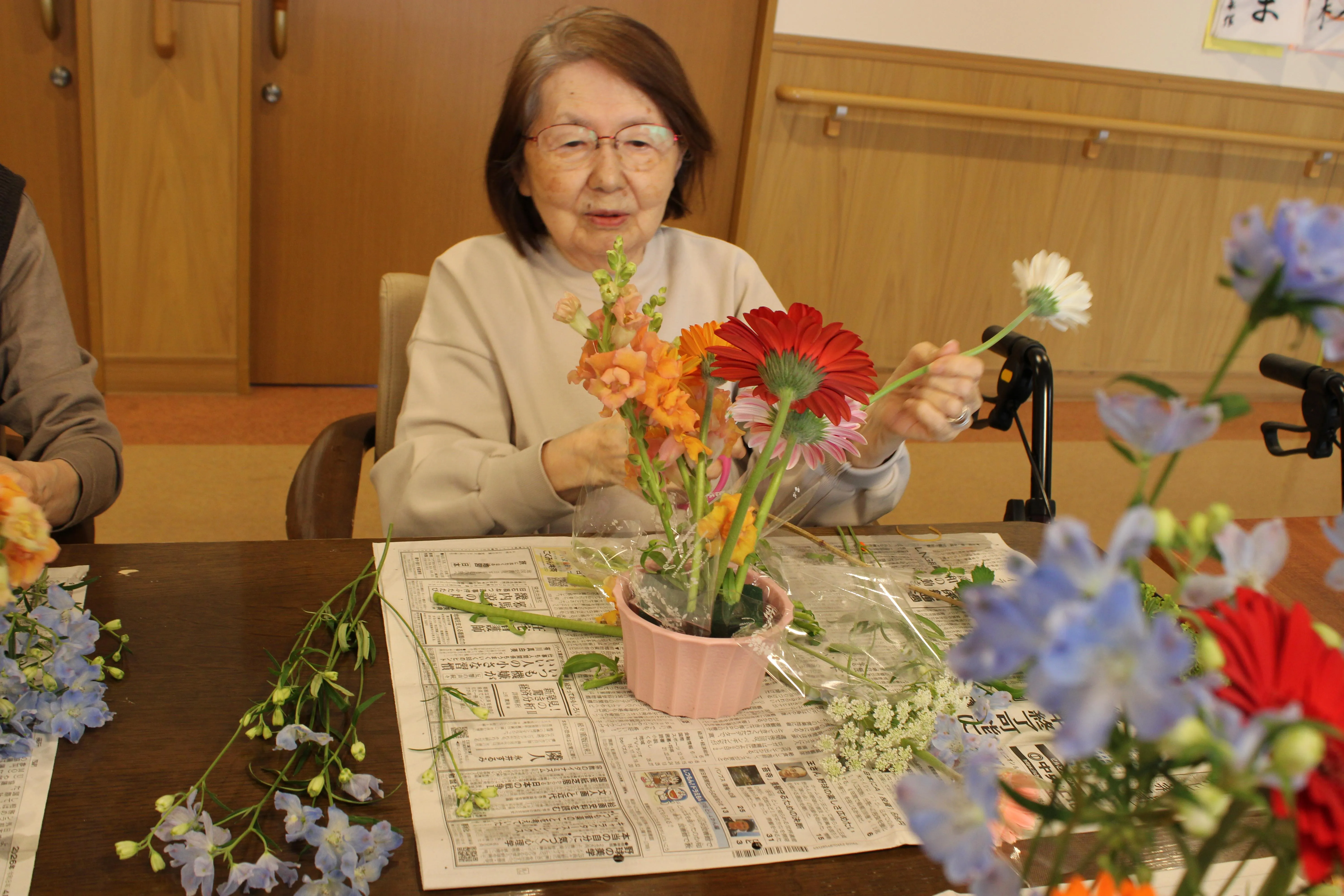 「きれいだね」「明るい気持ちになるね」といった声も聞かれ、それぞれ思い思いに花を手に取りながら、穏やかな時間が流れていました。