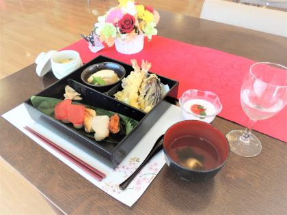 お寿司に天ぷら、とても和風で春にピッタリのお料理たちです。おいしそうですね!