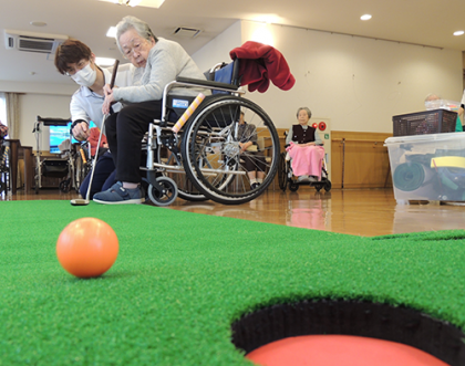 ゴルフ経験者の私もやらせてもらいましたが、8球中1球だけしか入りませんでした…。
