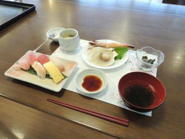 さて、お待たせいたしました。今年のメニューはお寿司に海老とホタテの酒蒸しに茶わん蒸しです!