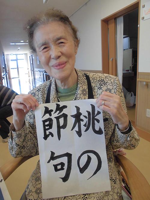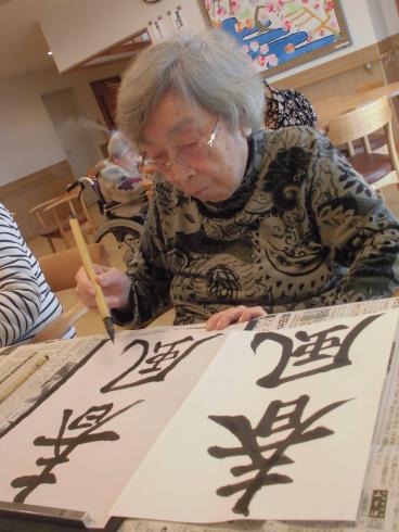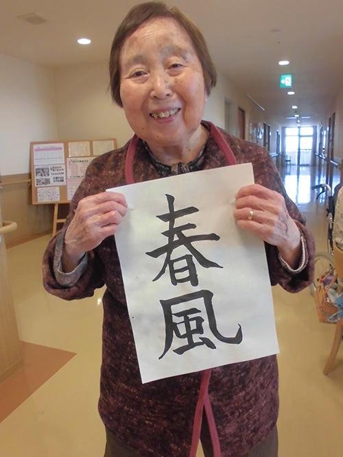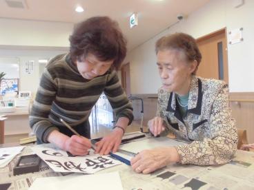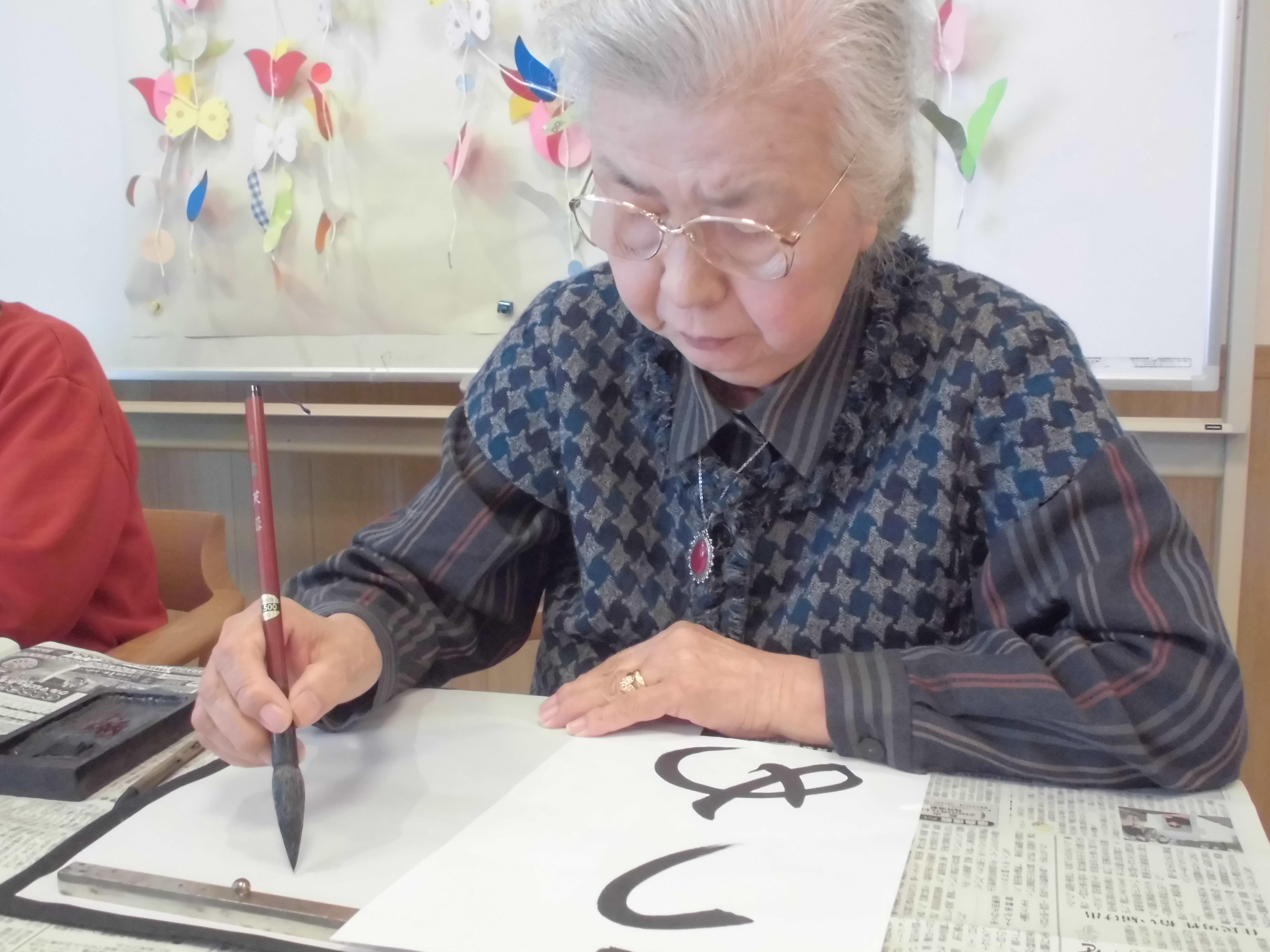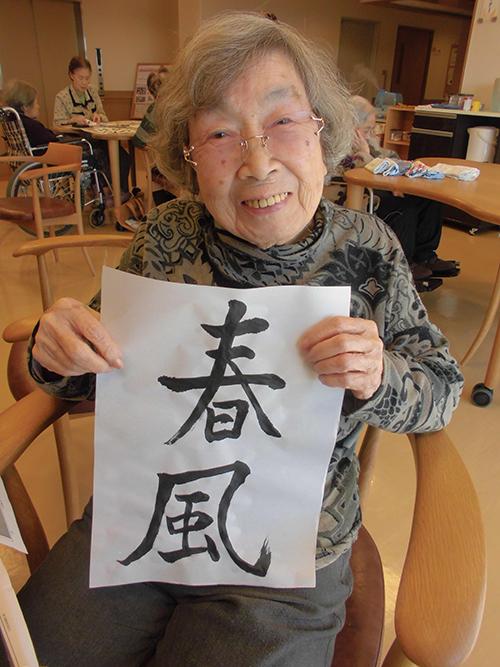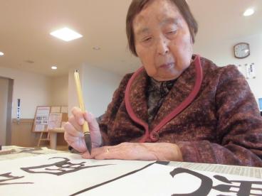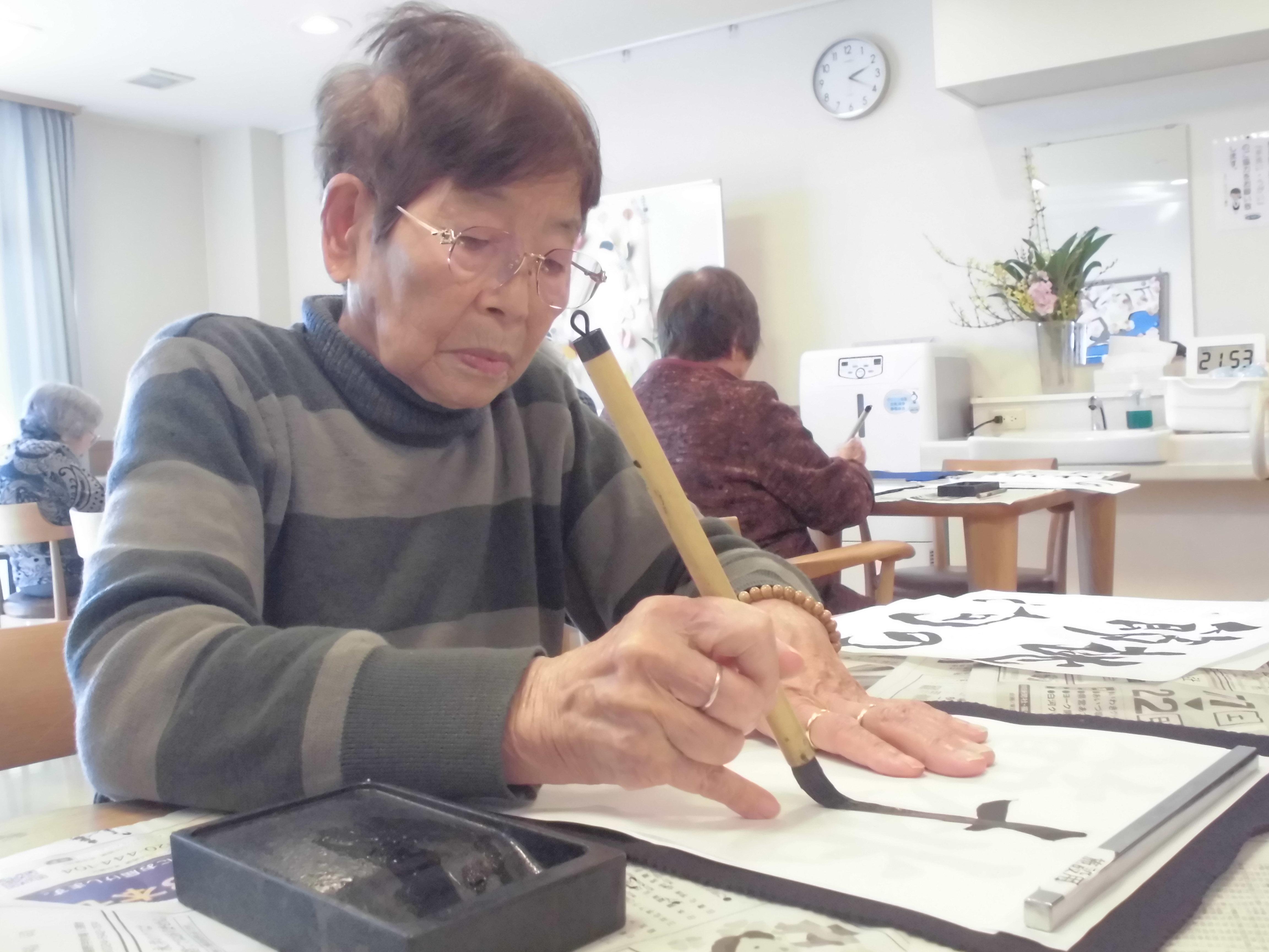 以前習っていた方や書道がお好きで書いていた方が多く、展示させて頂いている作品を見て、見学や内覧のお客様からは「皆さん上手ですね」とお話しいただいています。