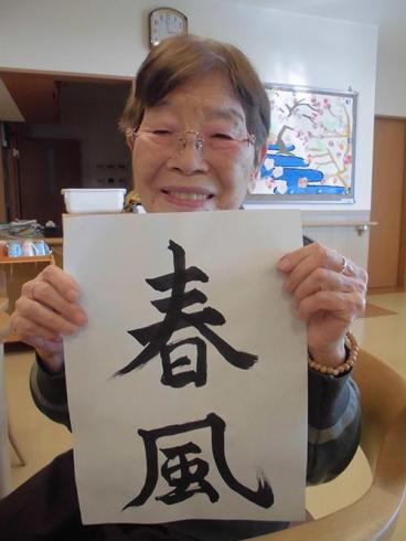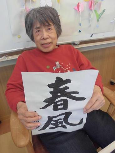 今回の書道クラブのお題は「春風」「うめ」「桃の節句」でした。