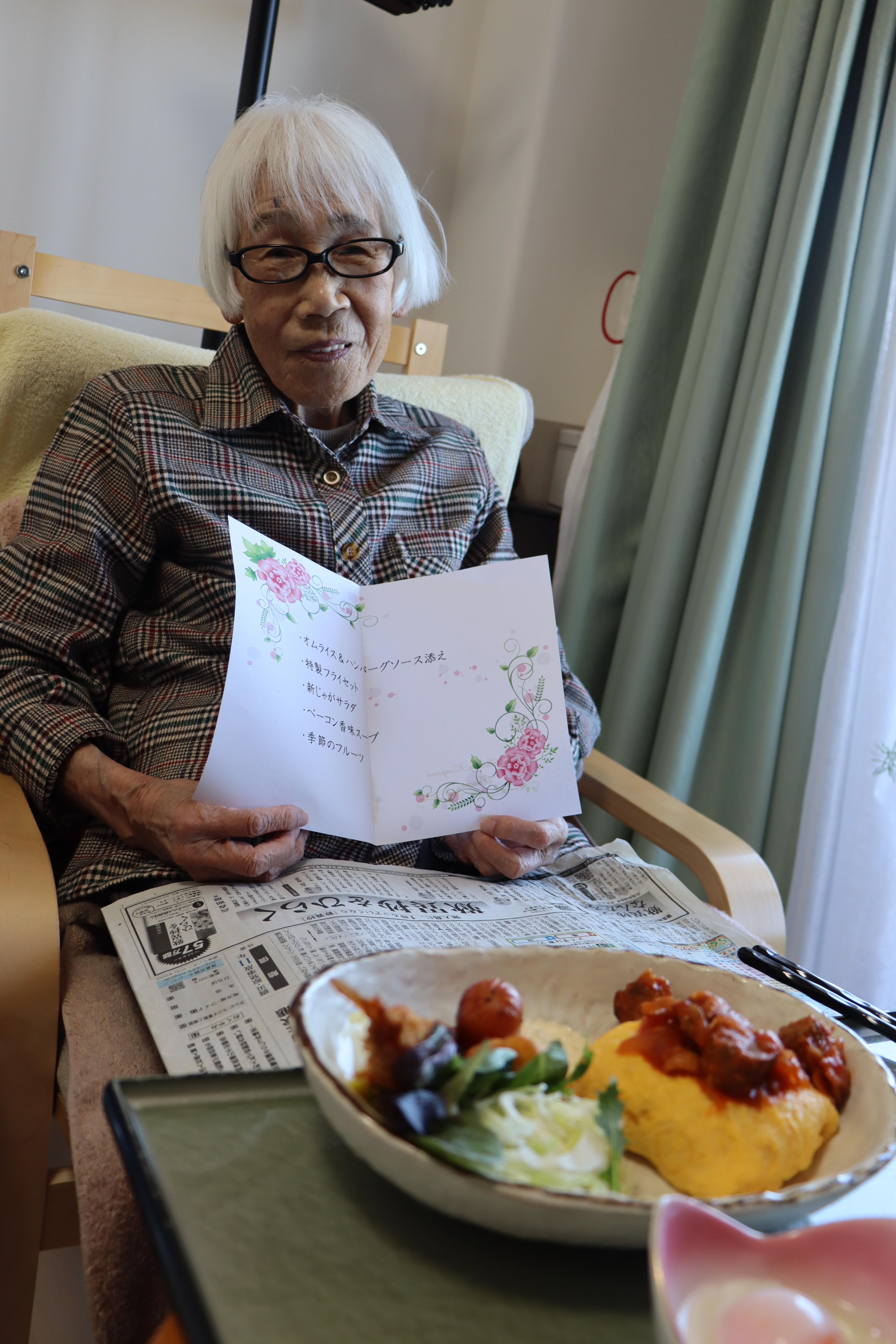 本日のレストランのメニューは…★オムライス&ハンバーグソース添え★特製フライセット★新じゃがサラダ★ベーコン香味スープ★季節のフルーツの、大人のお子様ランチでした!ボリューム満点で、見た目も可愛いランチに喜ばれていました。