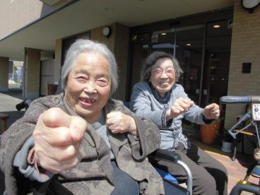 運動がてら歩きたい方は職員と一緒に近所を散歩、車いすの方も一緒に散歩をしたり日向ぼっこをしたり。