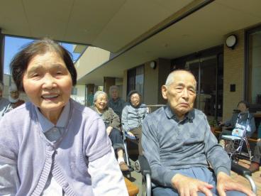 今日は天気も良く風もない朝だったので、いつものラジオ体操の後に皆様で日向ぼっこと散歩をしてまいりました。