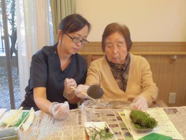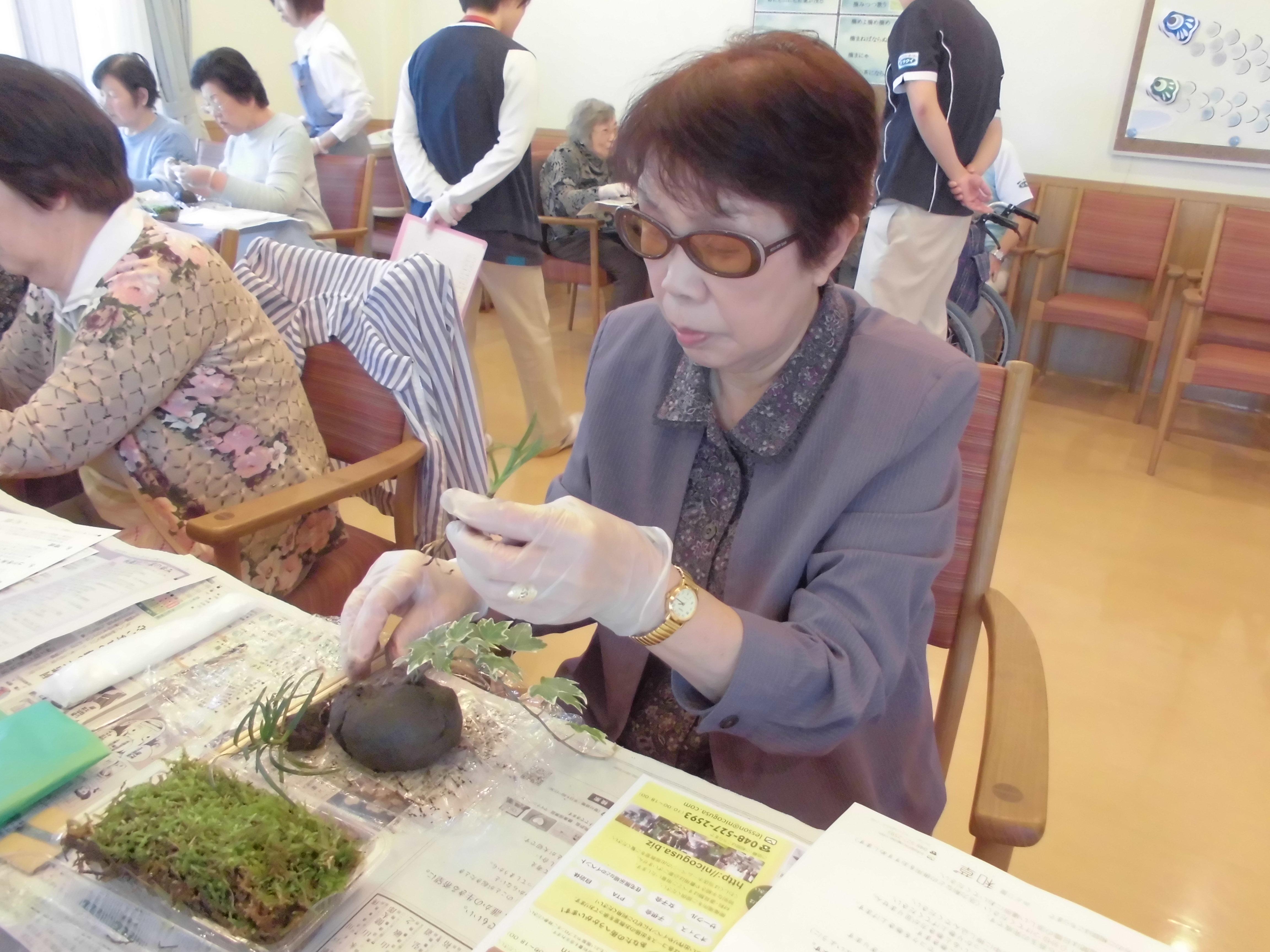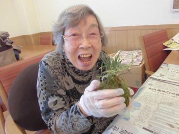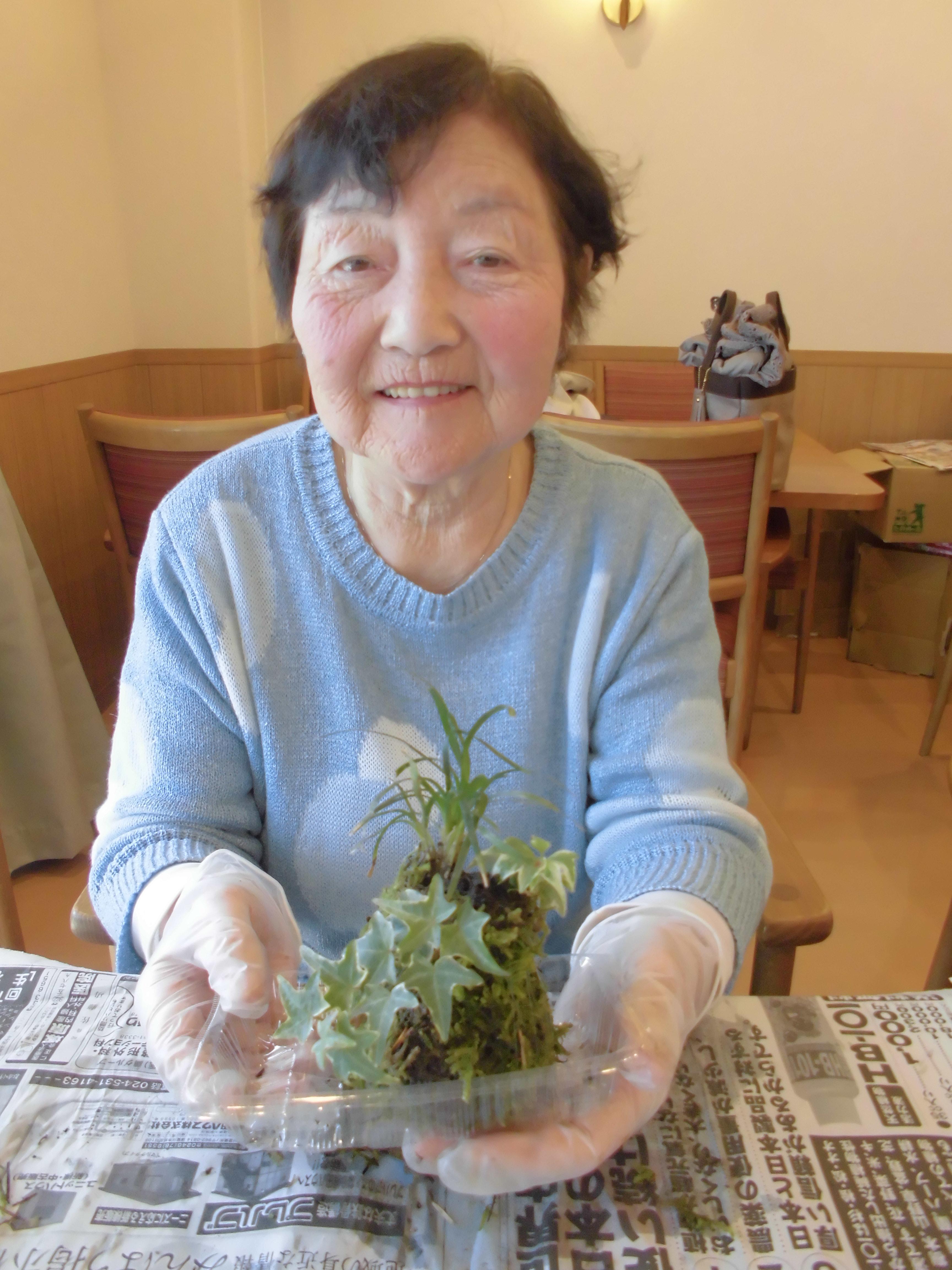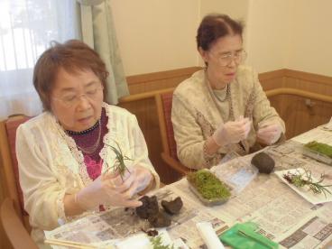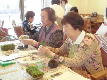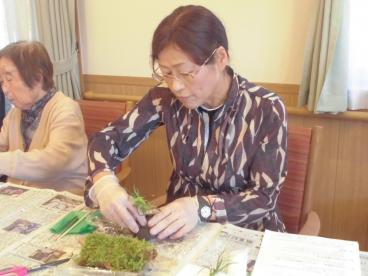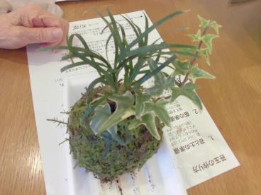 粘土のような土に植物を植えて、その上に苔を巻いていきます。