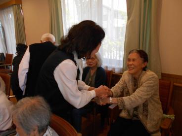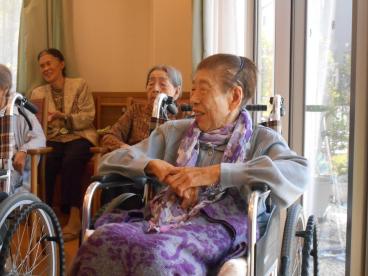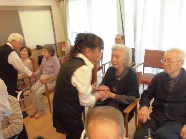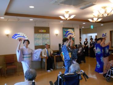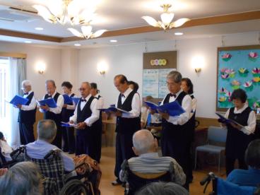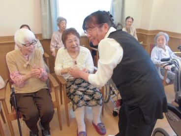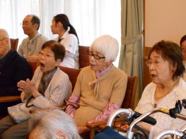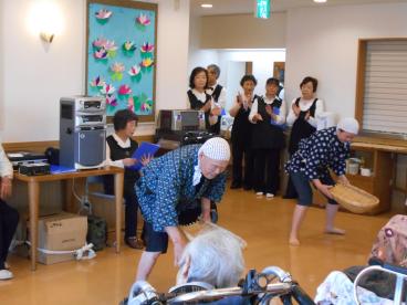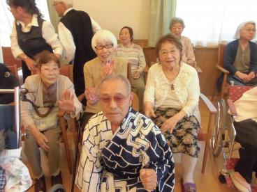 今日はボランティアで幅広く活躍されている朗々クラブの皆様が来設し、日本舞踊、ドジョウすくい、音楽に合わせた体操、皆様と一緒にコーラス独唱など、様々な演目でお客様を楽しませてくださいました。