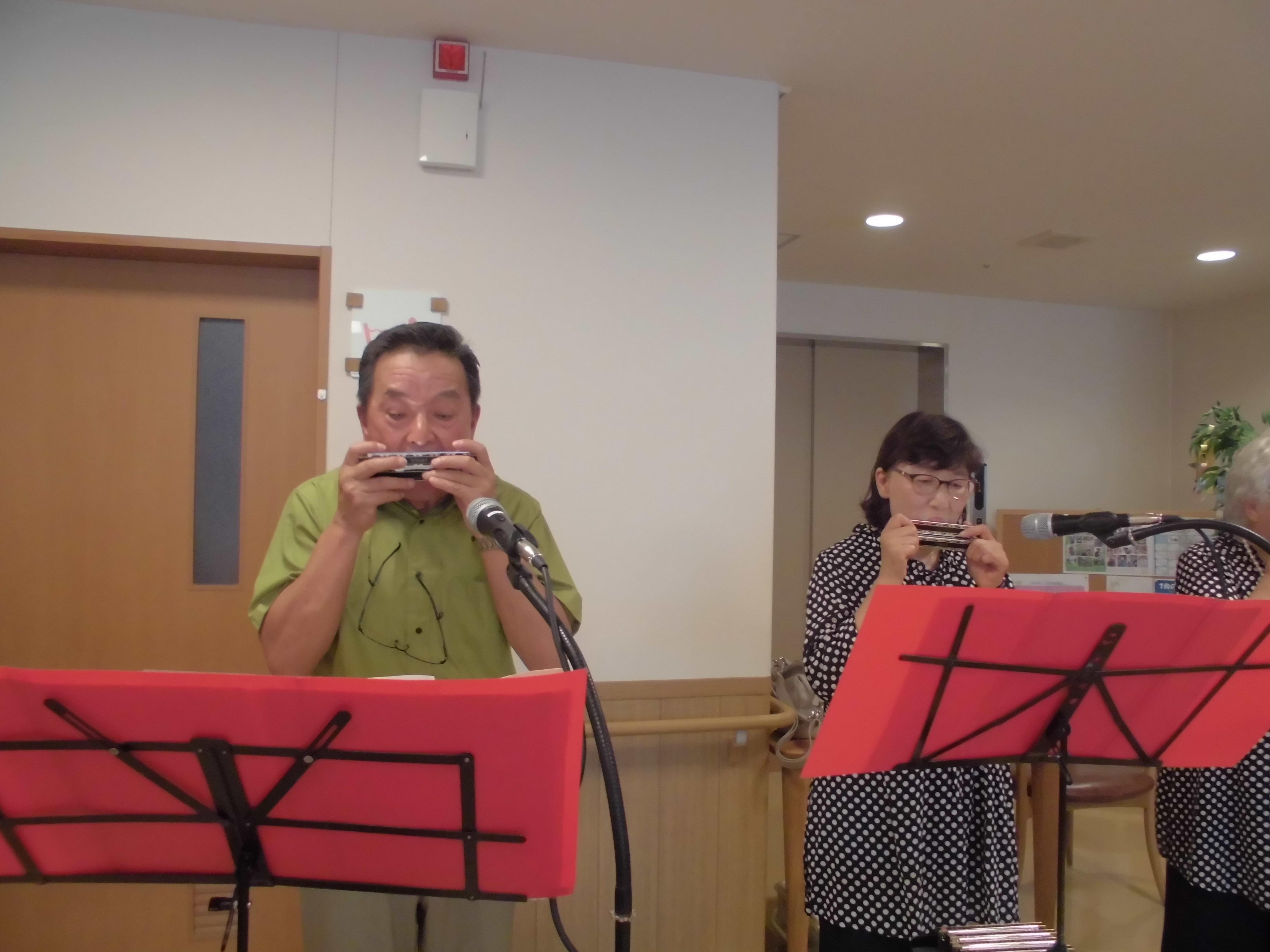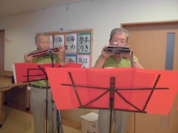 今日はハーモニカのボランティアの方々に来ていただきました。