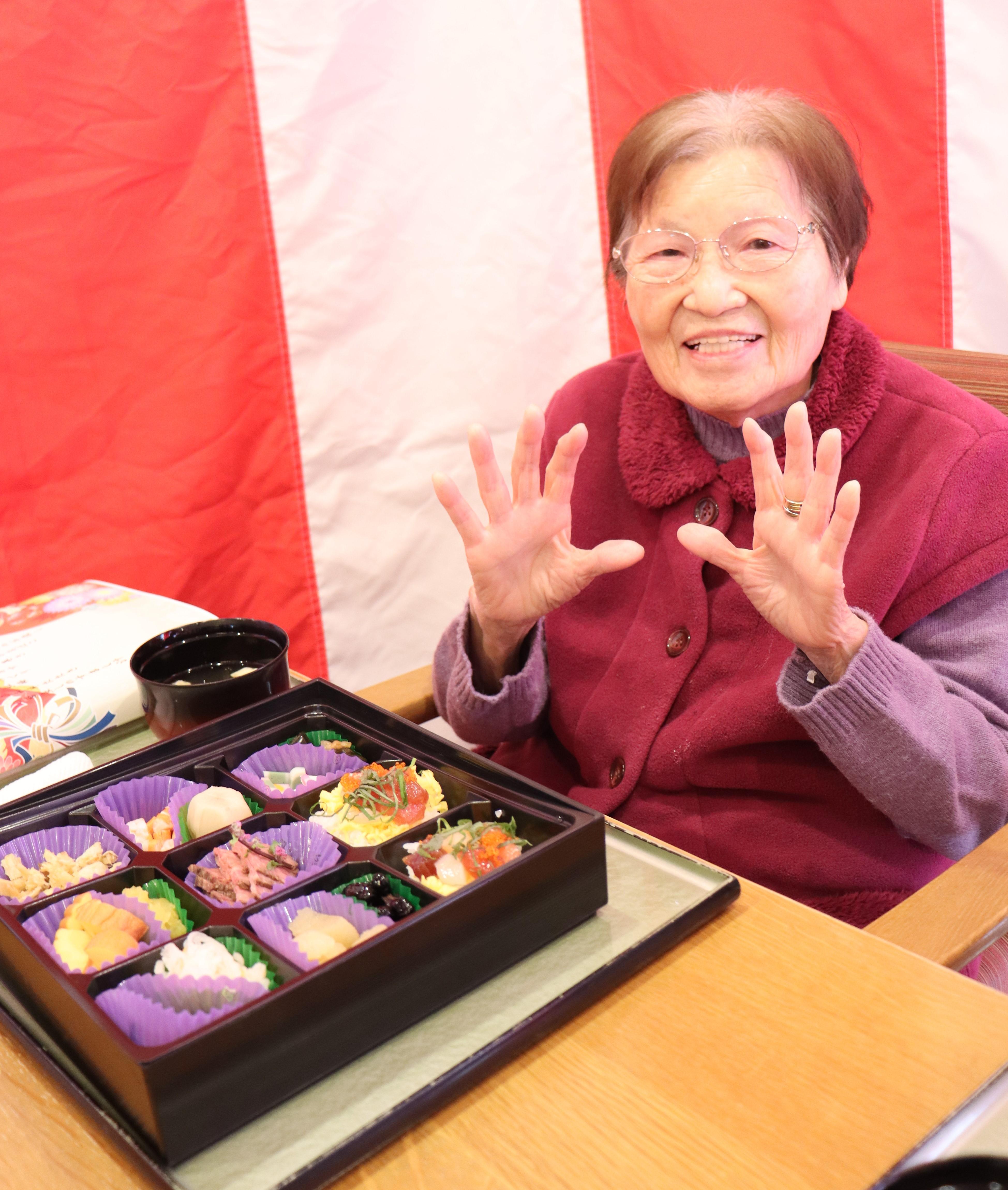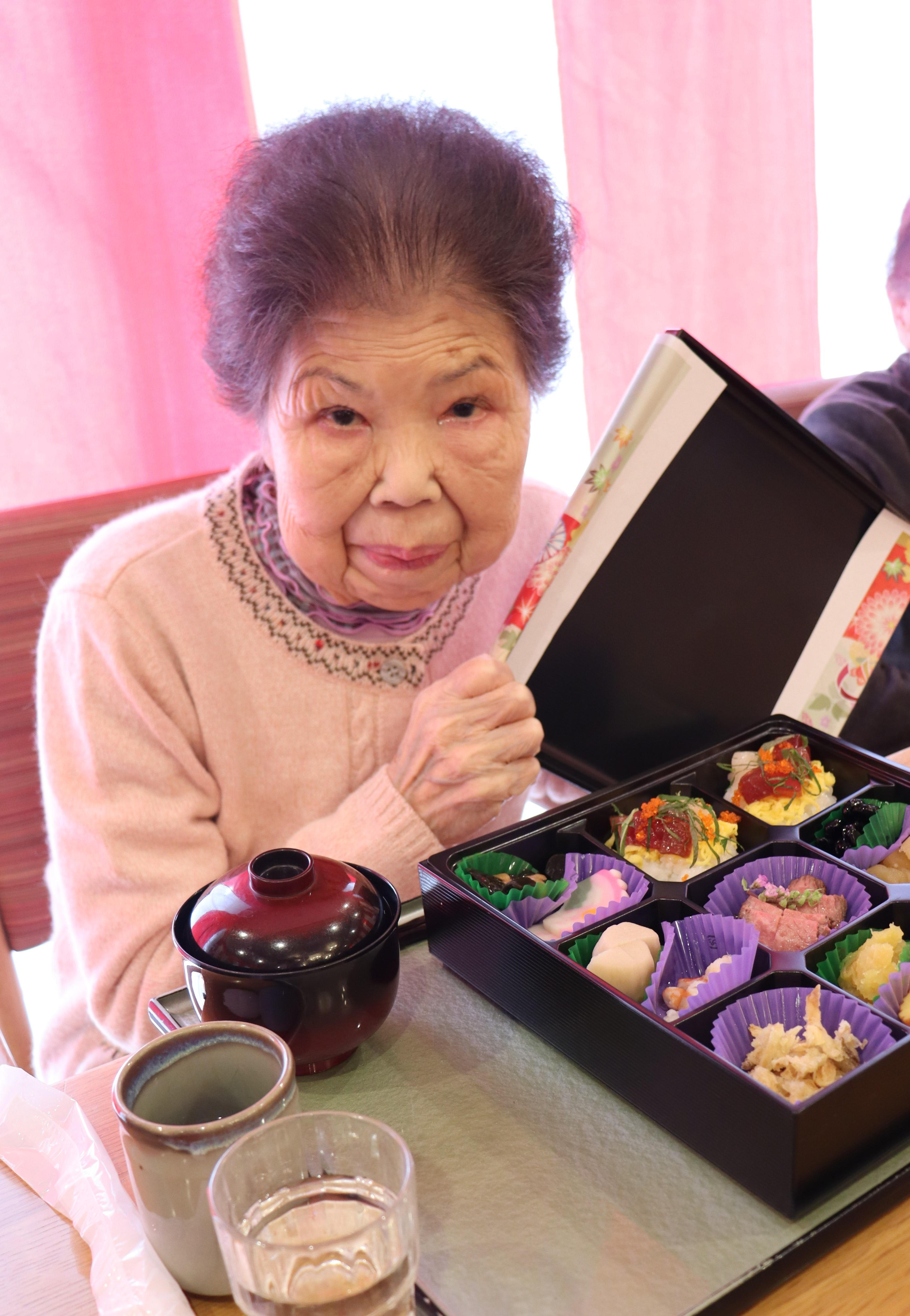 本日は、昼食におせちを召し上がっていただきました!