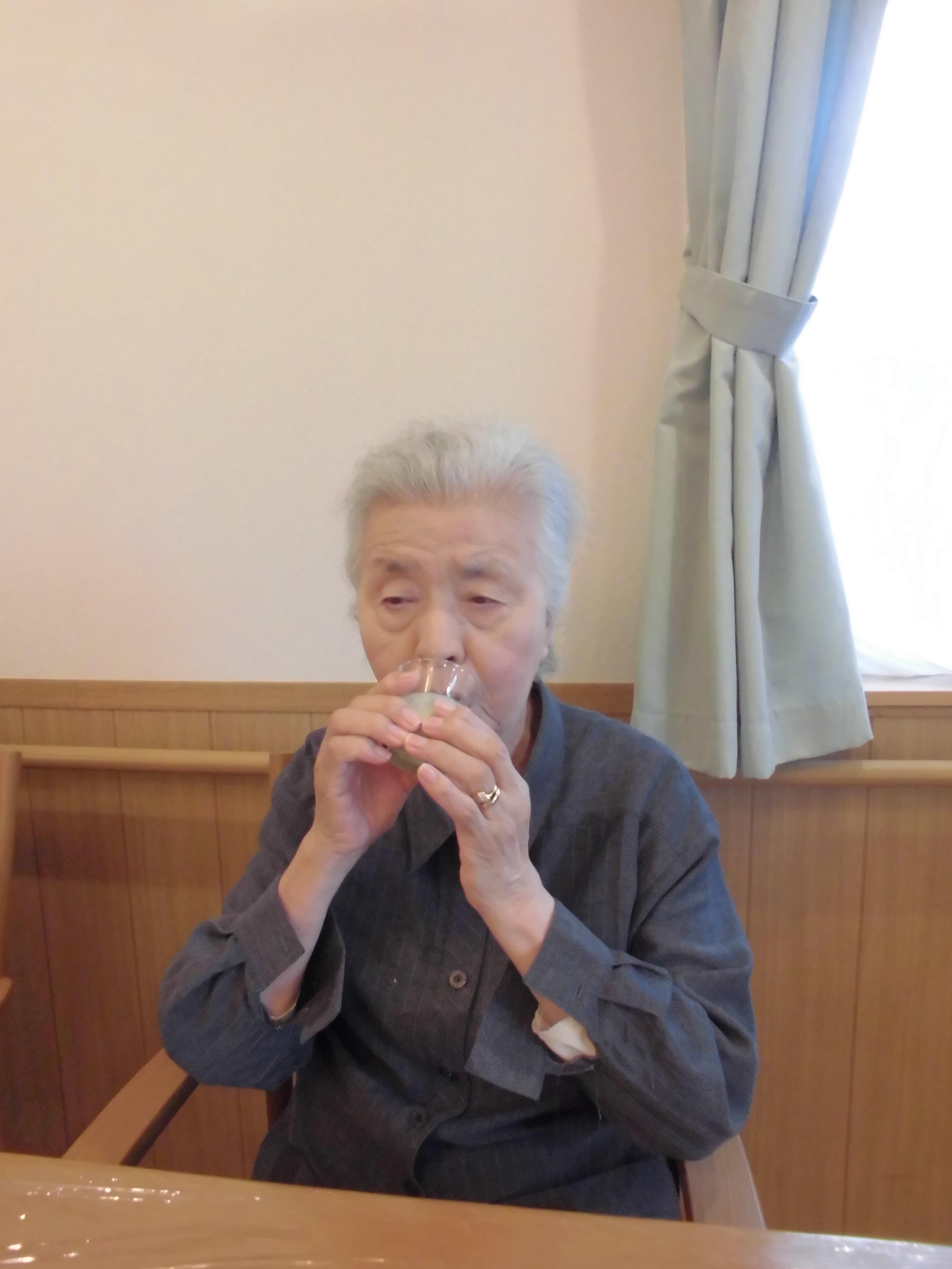 ツクイ・サンシャイン郡山の畑でとれた、小松菜を使ったスムージー作りに挑戦です!