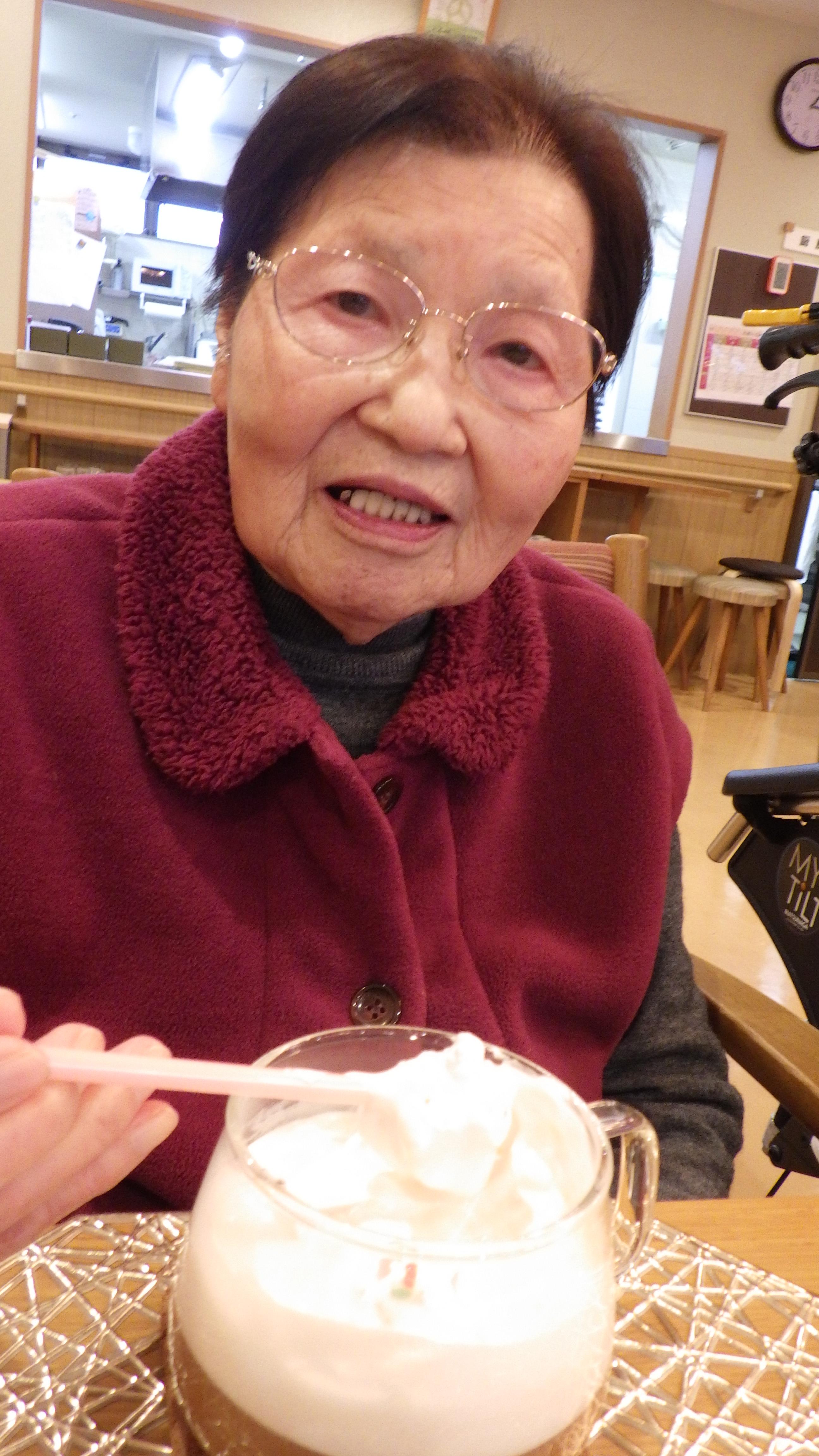 今日のカフェはいつもの飲み物とは一味違い、生クリームをトッピングして見た目もおしゃれで甘い飲み物を味わっていただきました!
