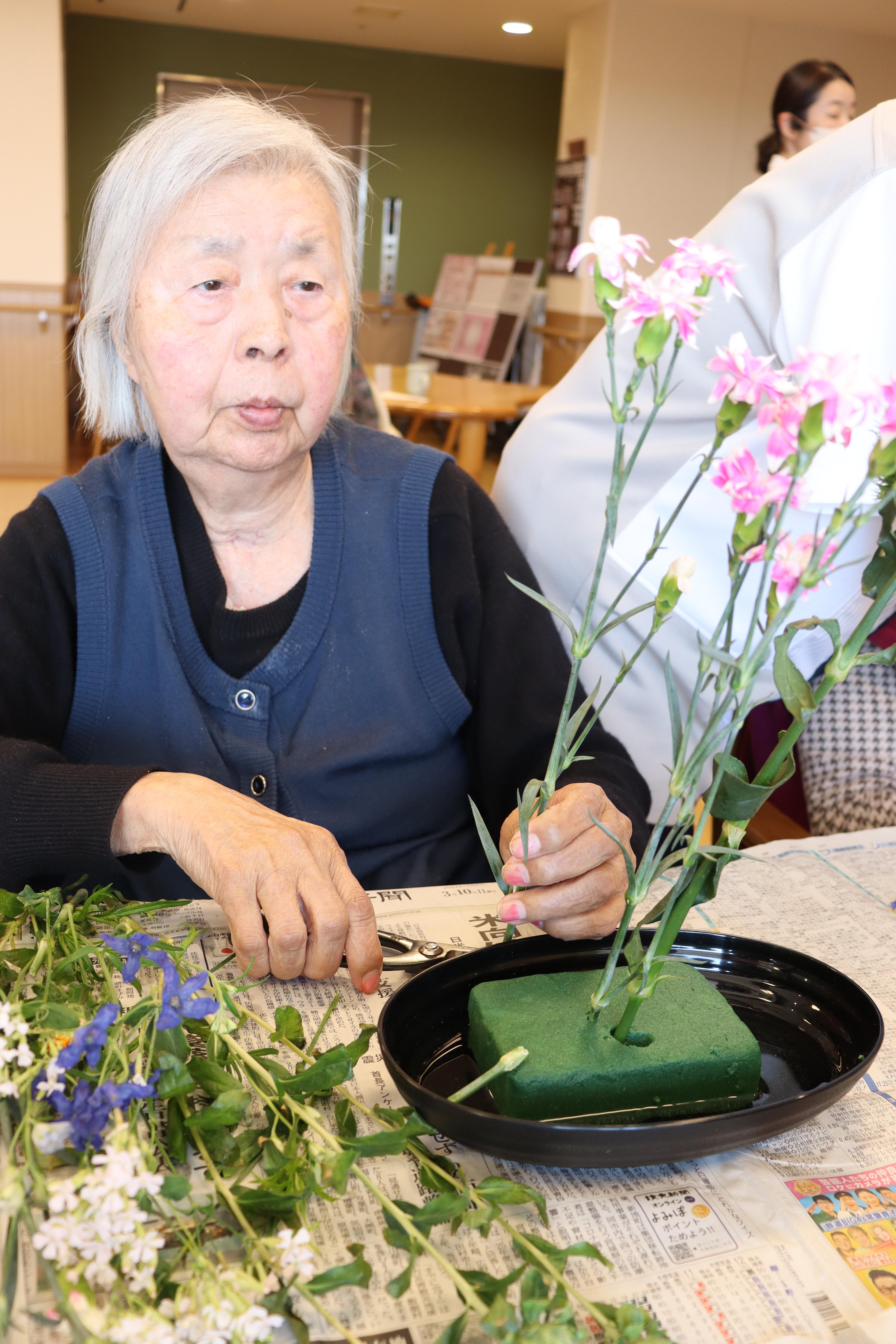 お花が好きなお客様に集まっていただき、思い思いにアレンジしていただきました。皆様、真剣に取り組まれていました。完成した作品は事務所前やフロアに飾らせていただきました。
