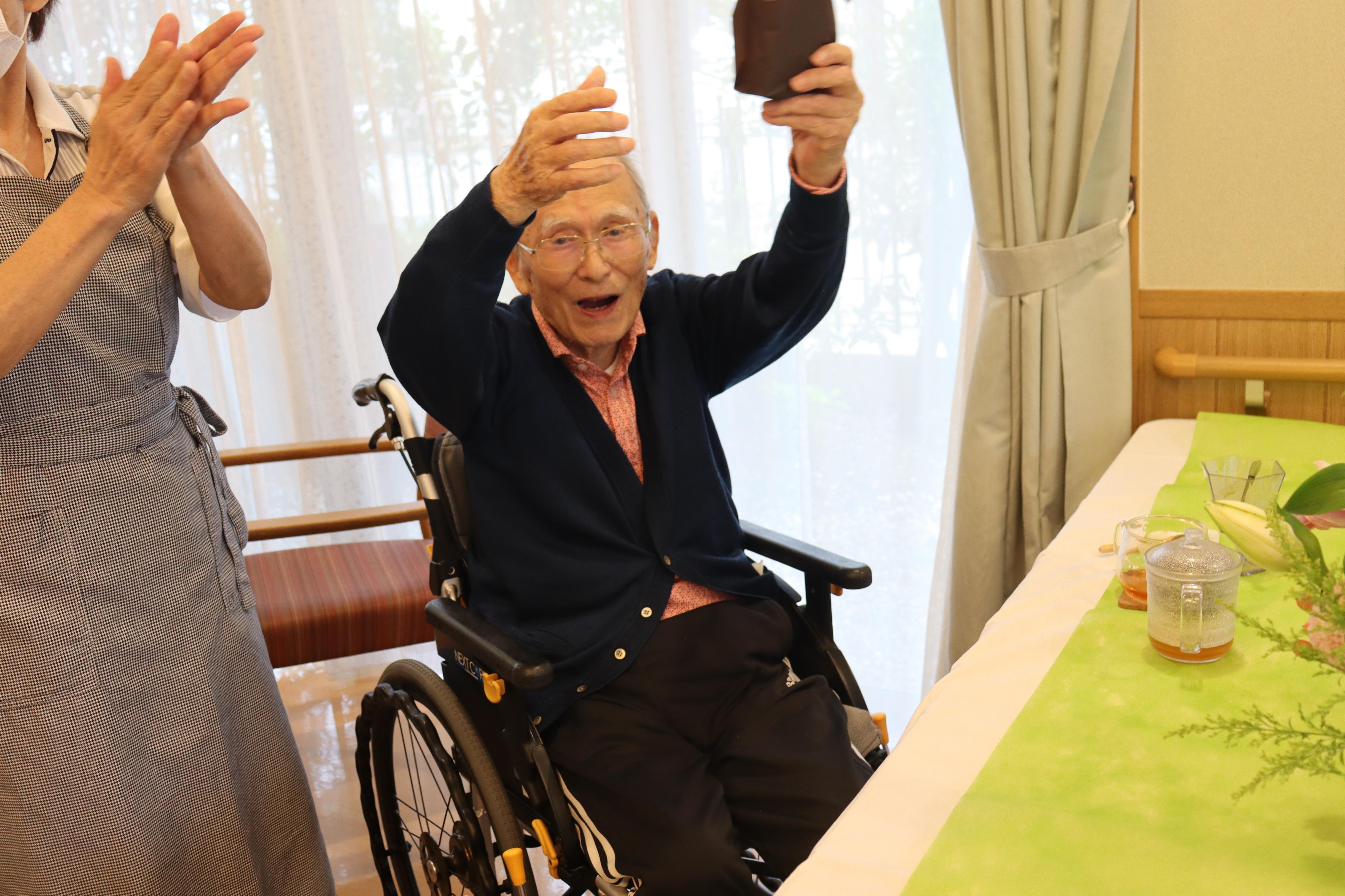本日のカフェは、昨日が父の日ということで、男性のお客様には施設からささやかなプレゼントをさせていただきました。プレゼントを渡すと皆様、ニコっと笑顔になってくださいました!カフェのデザートは、暑い日にぴったりなチョコミントアイスを召し上がっていただきました。