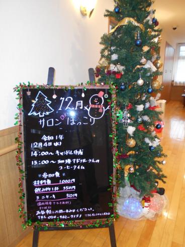 施設の事務所にも、クリスマスオーナメントと一緒に飾らせて頂きましたので、施設にお越しの際はぜひ見て頂ければと思います。