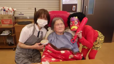 豆を投げたあとには、鬼とお写真をパシャリ。