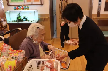 ツクイ・サンシャイン郡山では毎週金曜日に、とくし丸という軽トラックで色々な商品を販売してくださる移動スーパーが来設します。