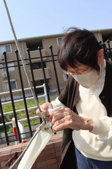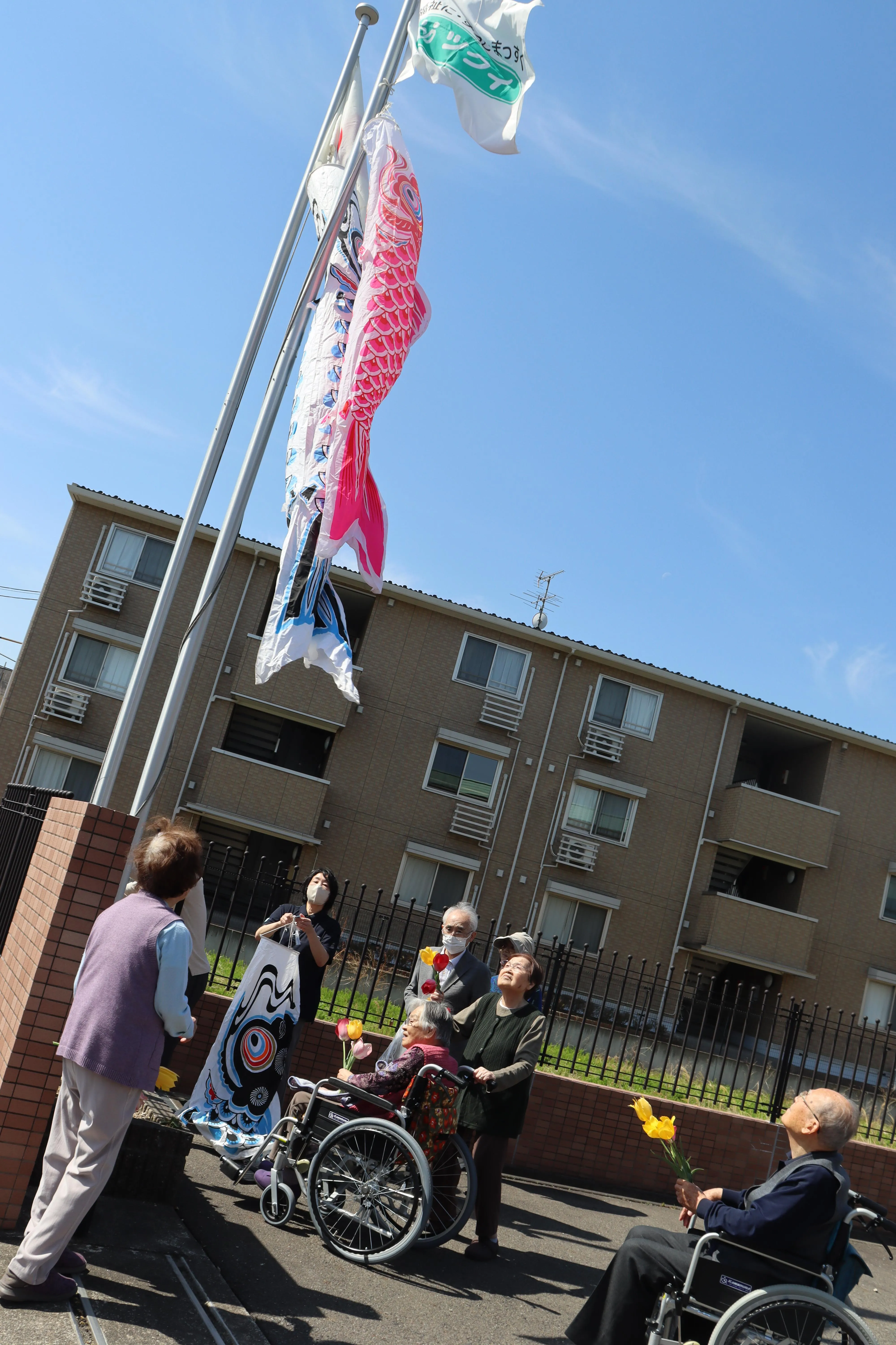 本日はお客様にお手伝い頂き、旗に加えて鯉のぼりも揚げました。