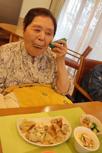 普段の献立には出ない、出来立ての”手作り餃子”を提供させて頂きました
