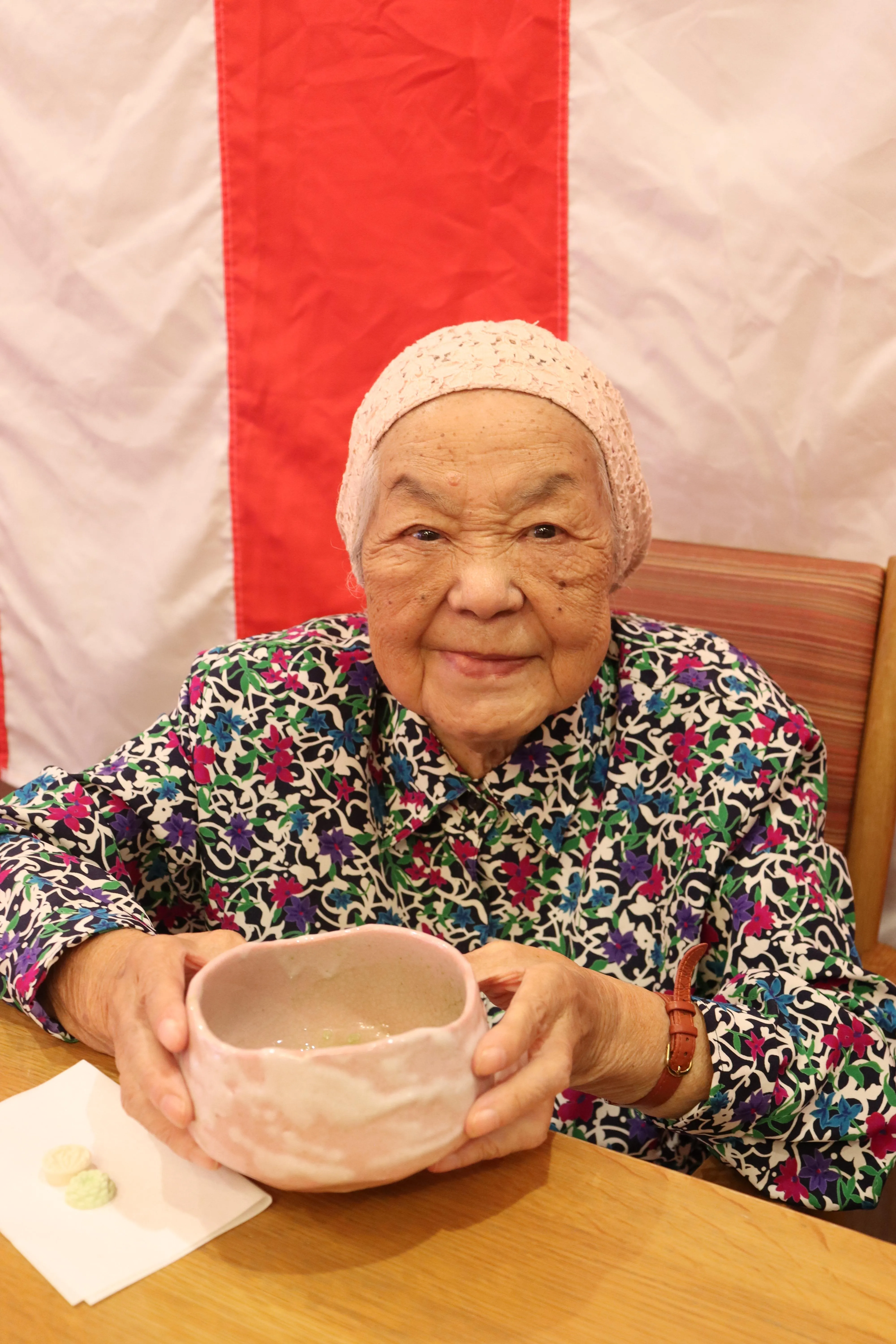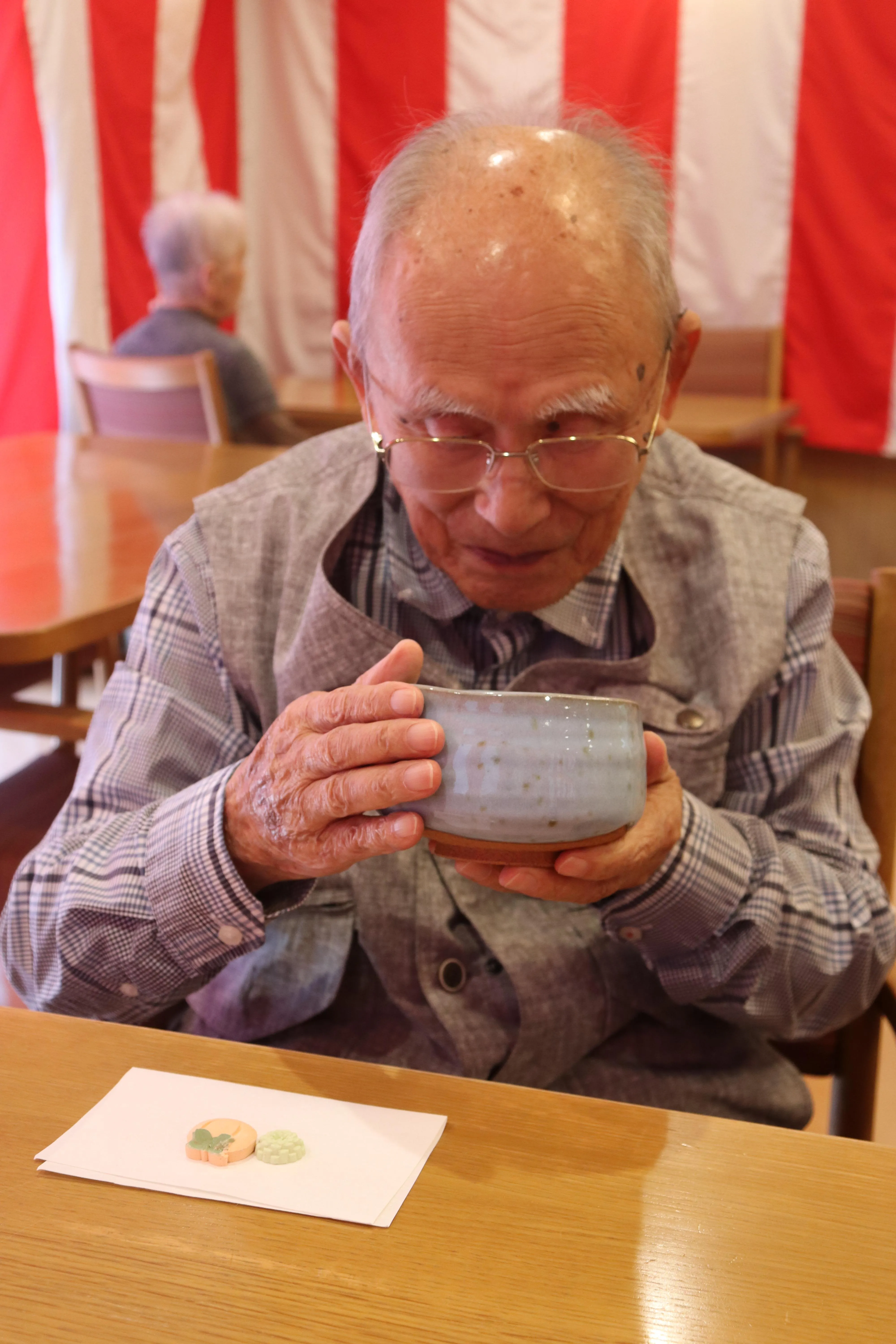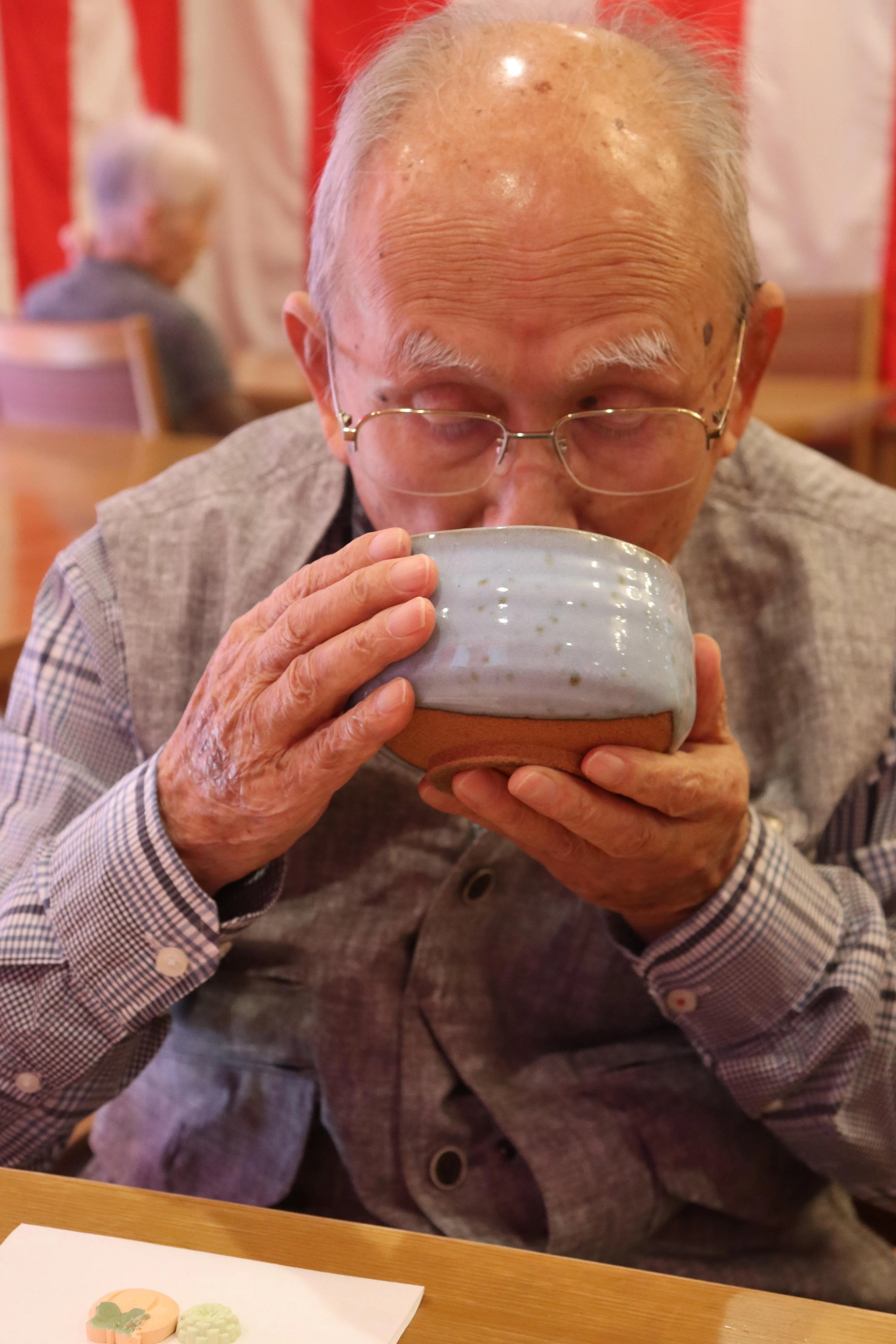 美味しいお抹茶を飲んだあとは、施設からのお祝いカードをお配りし、ちょっとしたレクリエーションをやりました。