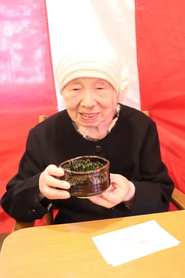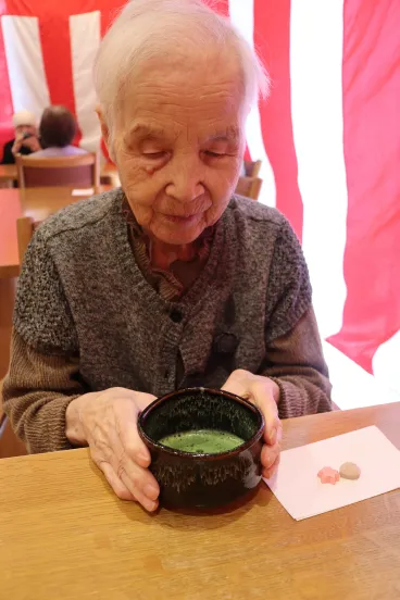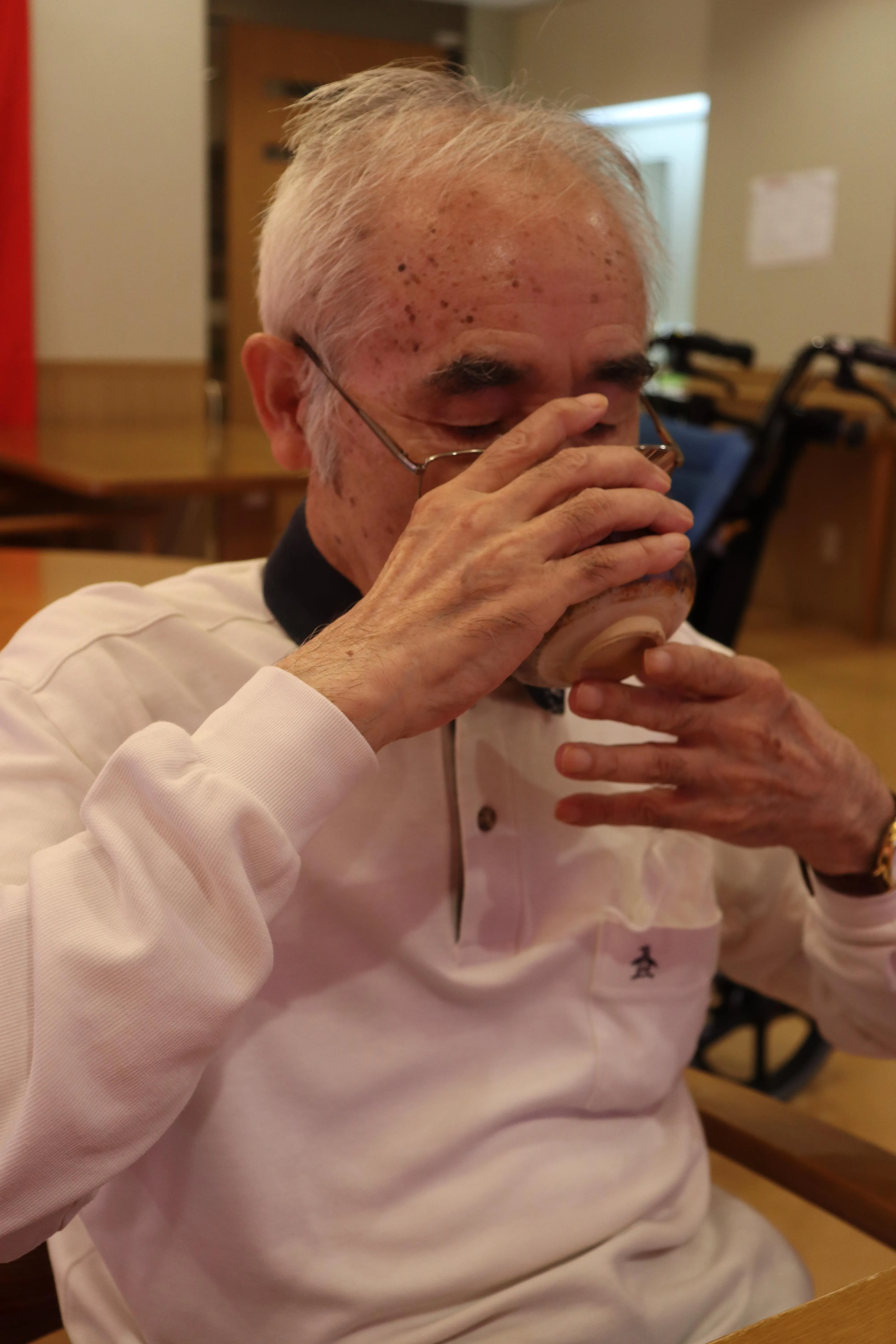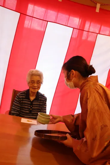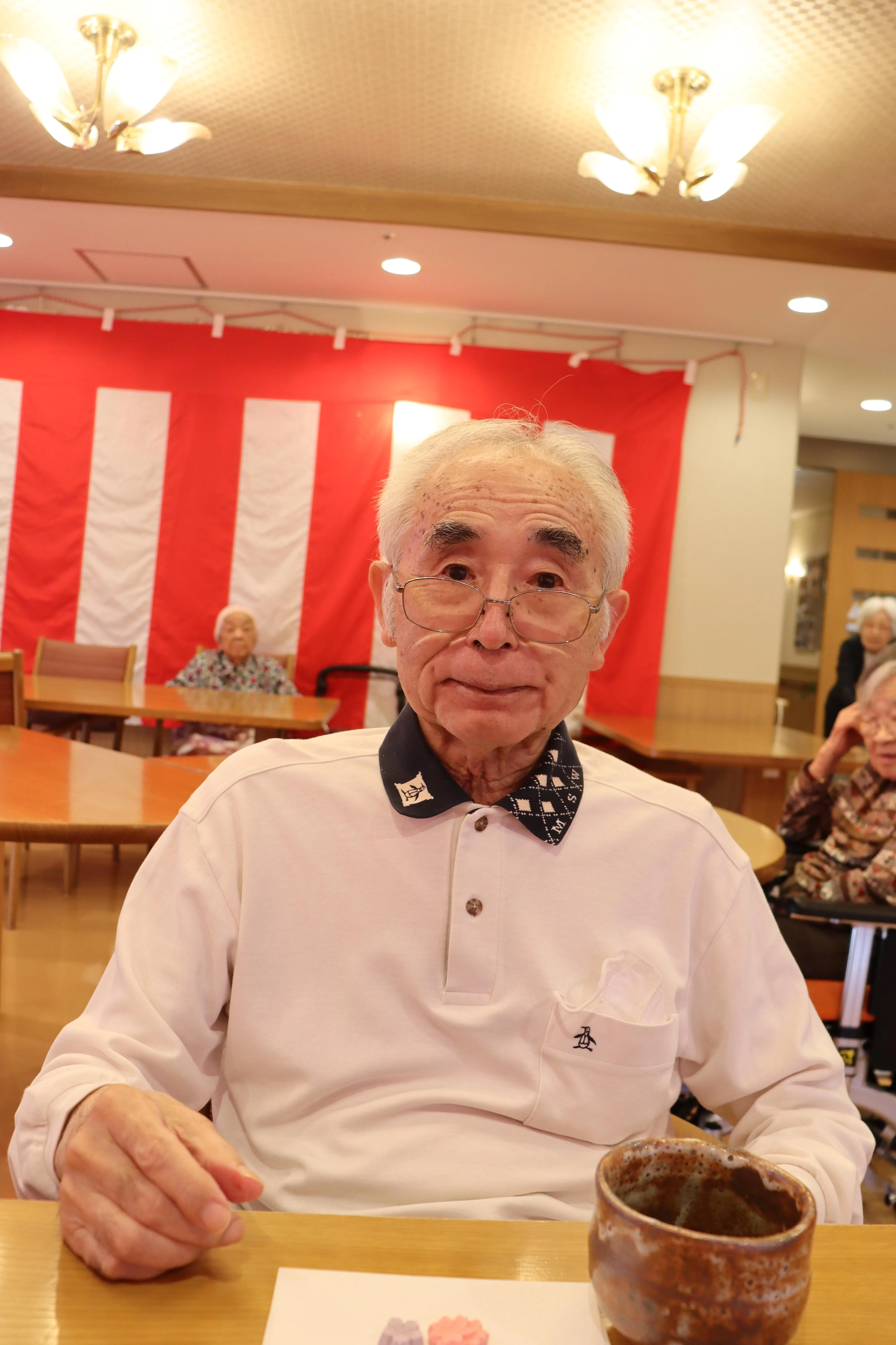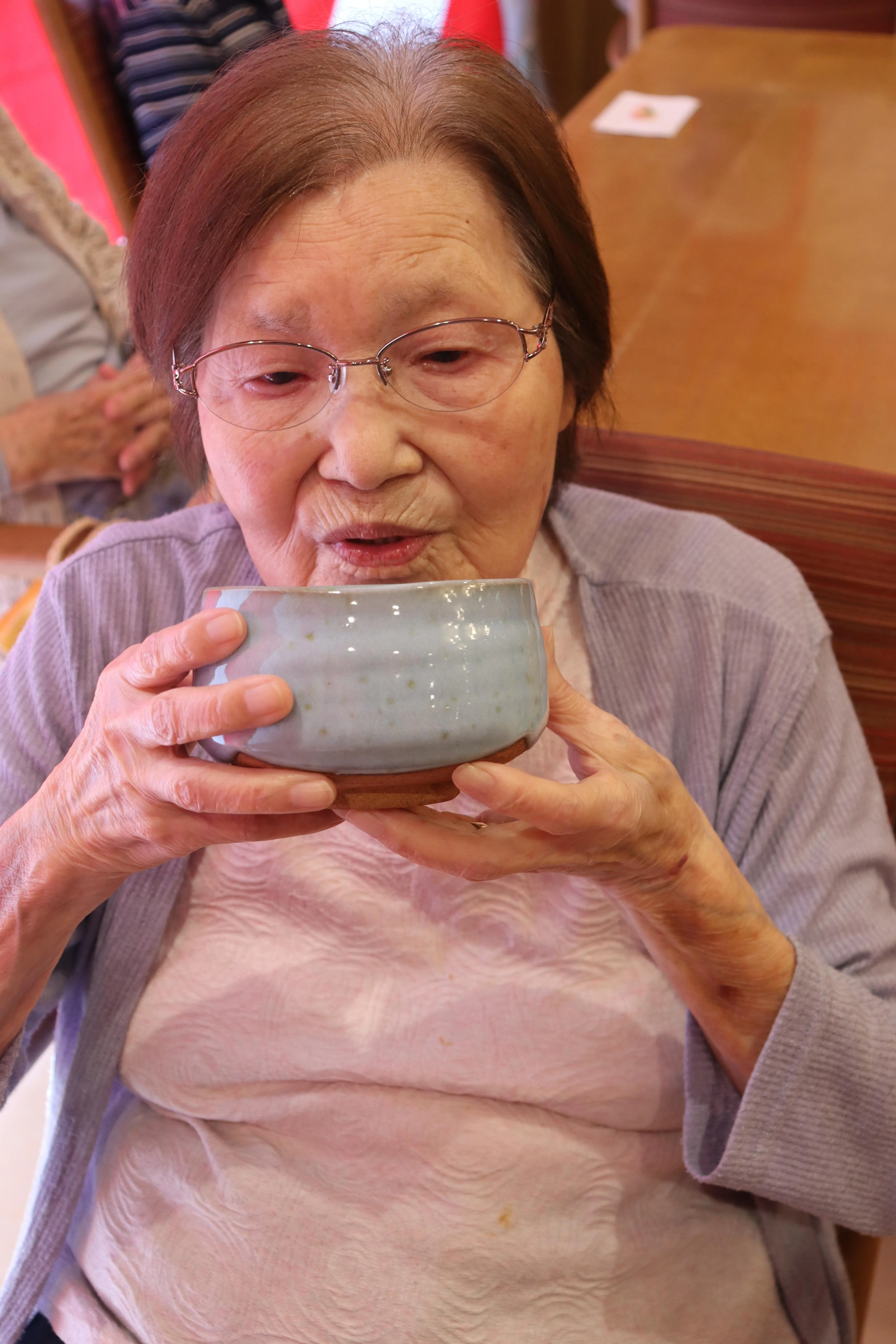 美味しいお抹茶を飲んだあとは、施設からのお祝いカードをお配りし、ちょっとしたレクリエーションをやりました。