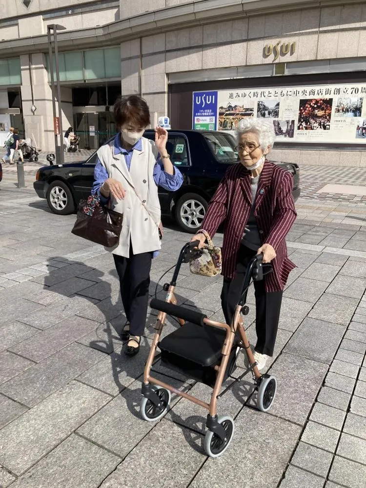 ご自分のシルバーカーでしっかり歩かれ、無事お買い物も終わりました
