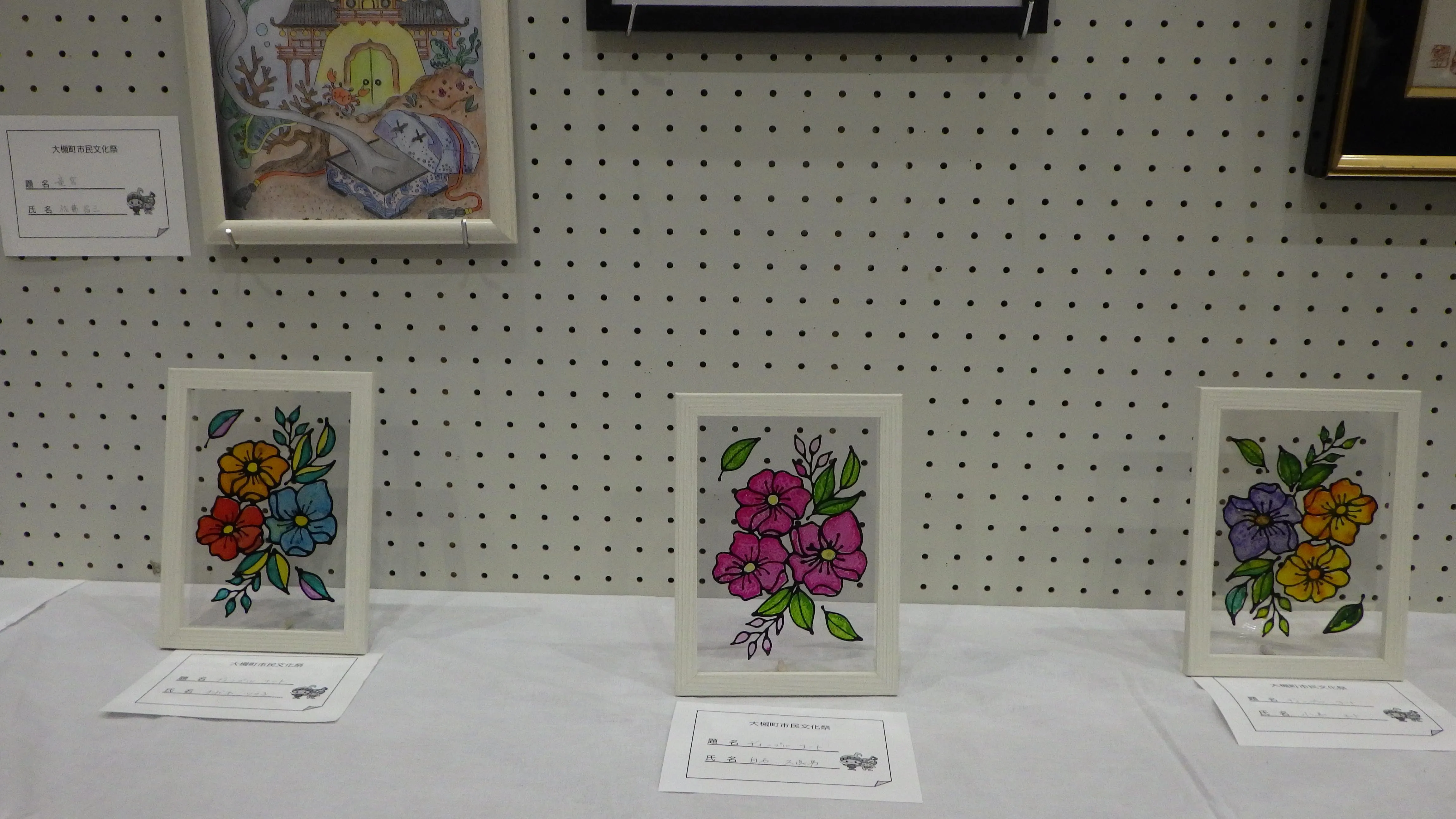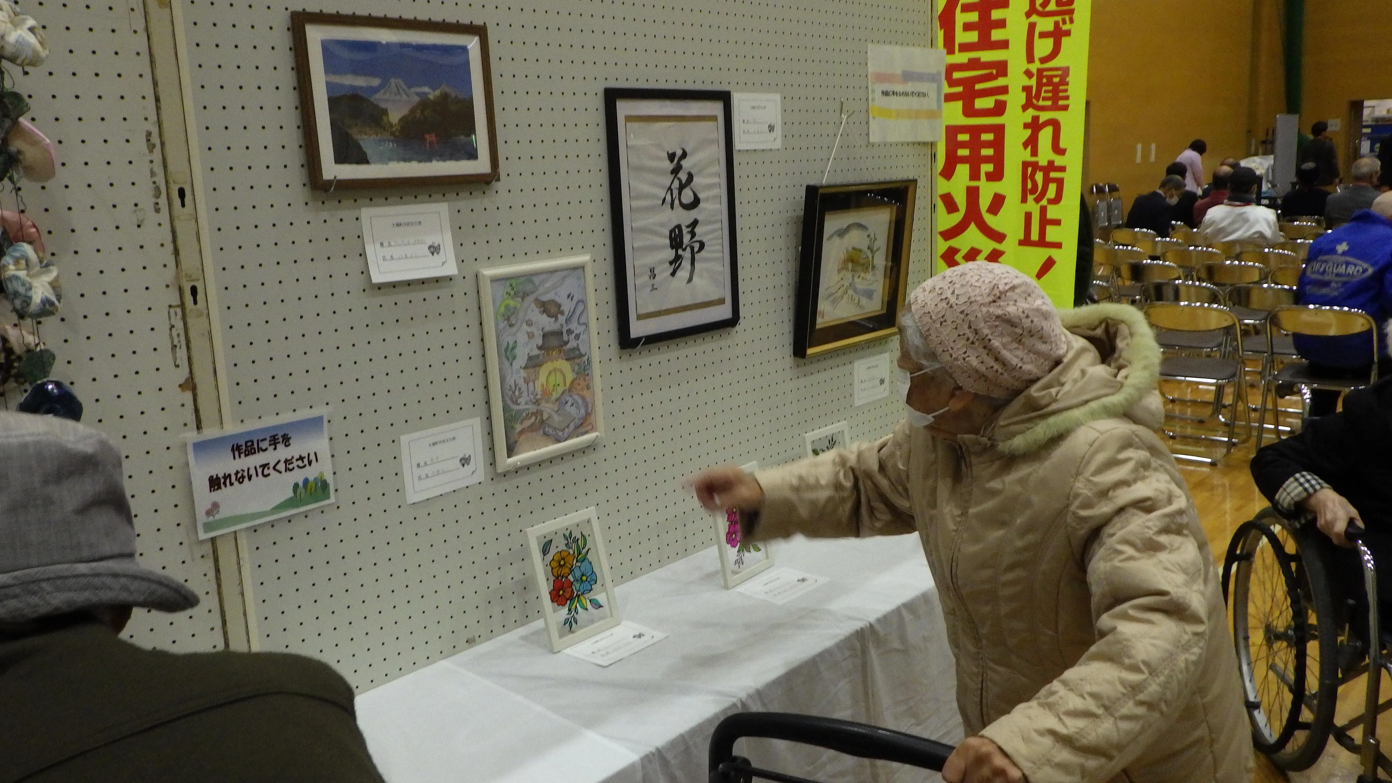 地域住民の方々や小学校の児童による作品展示や、芸能発表、市民楽団によるコンサート、手打ちそばコーナーなど色々なものがあり、当施設のお客様が制作したもの何点かを出品させていただきました。