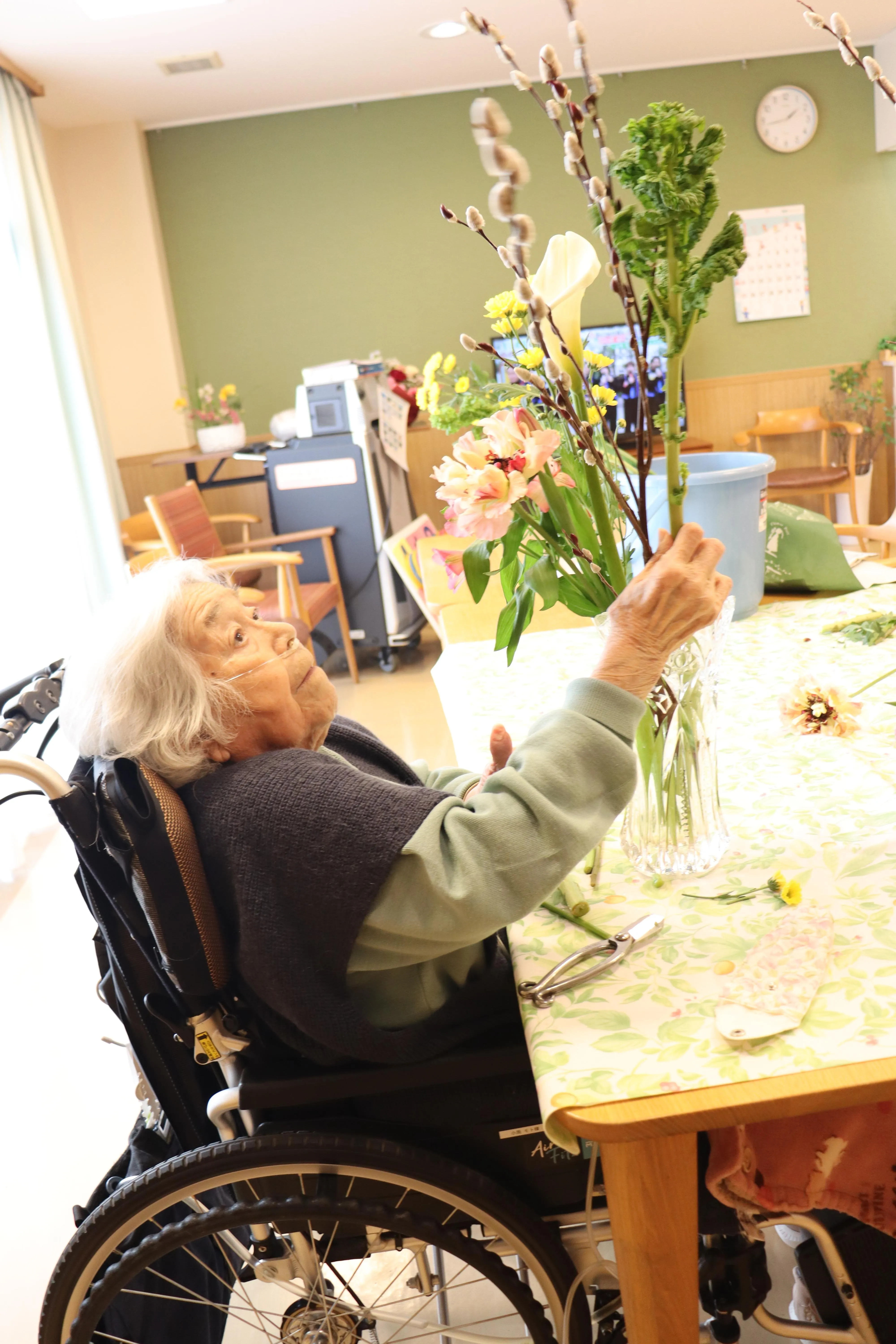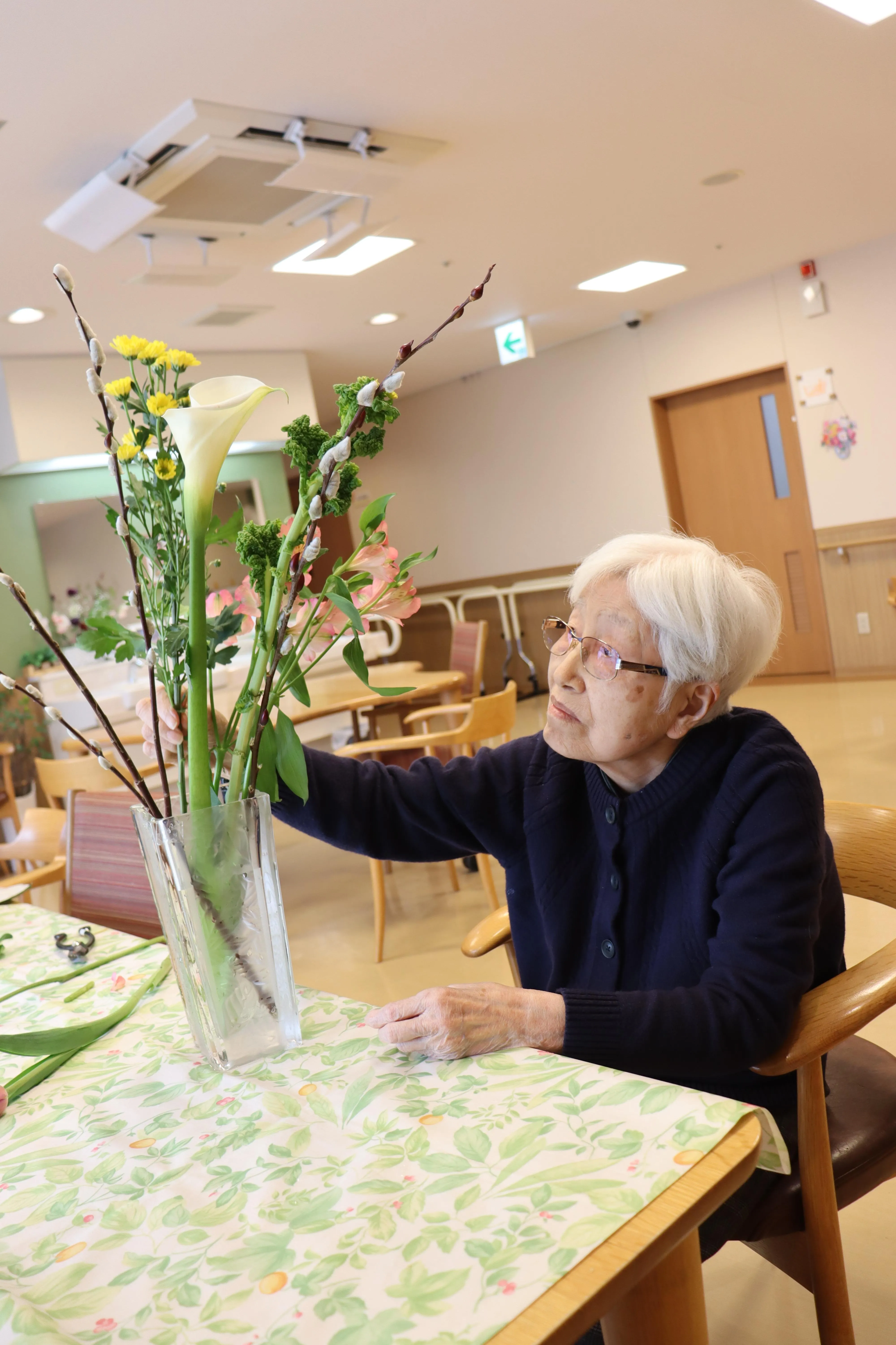 1月はお正月らしい華やかな花材を使用し、季節感あふれる作品づくりに取り組まれました。