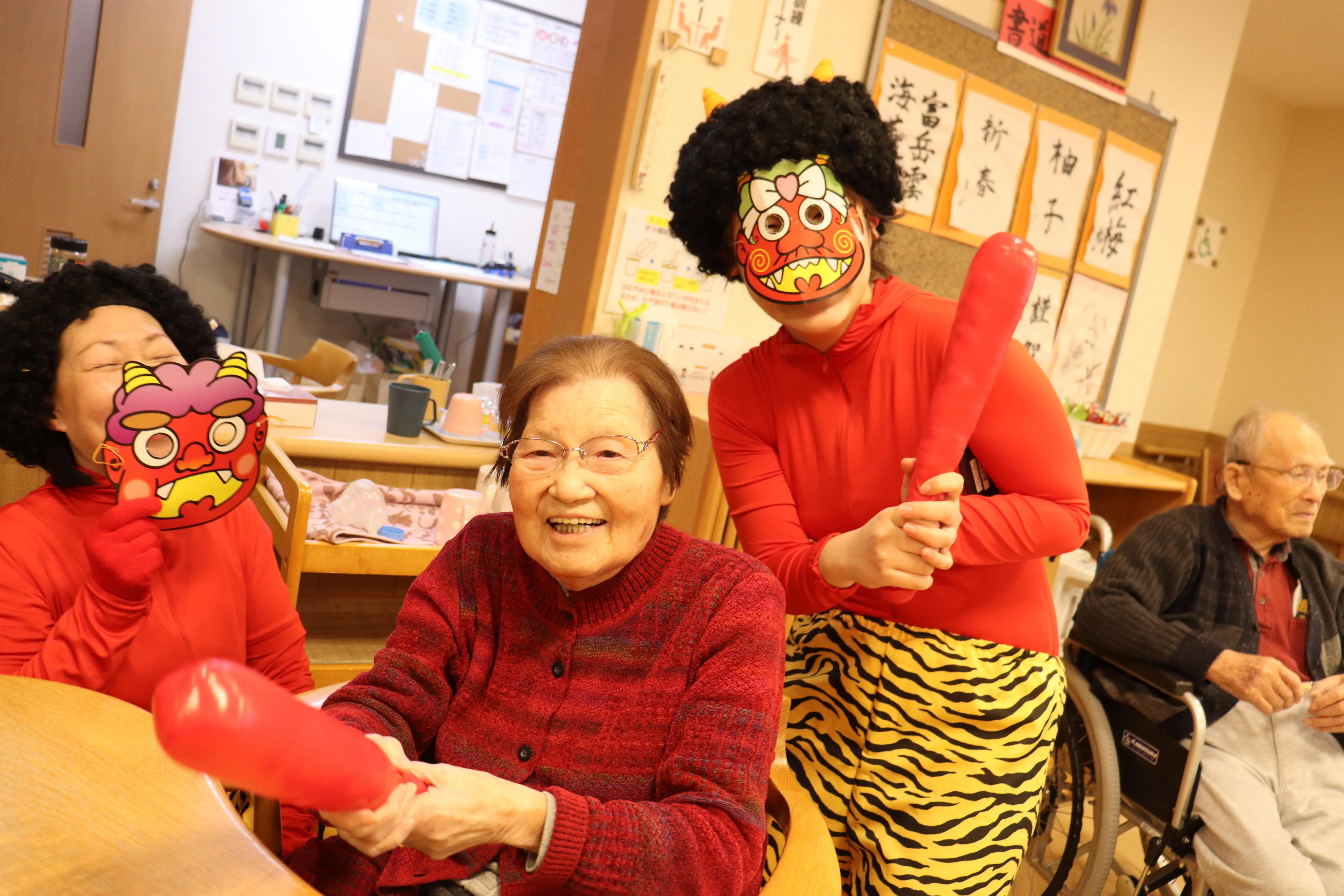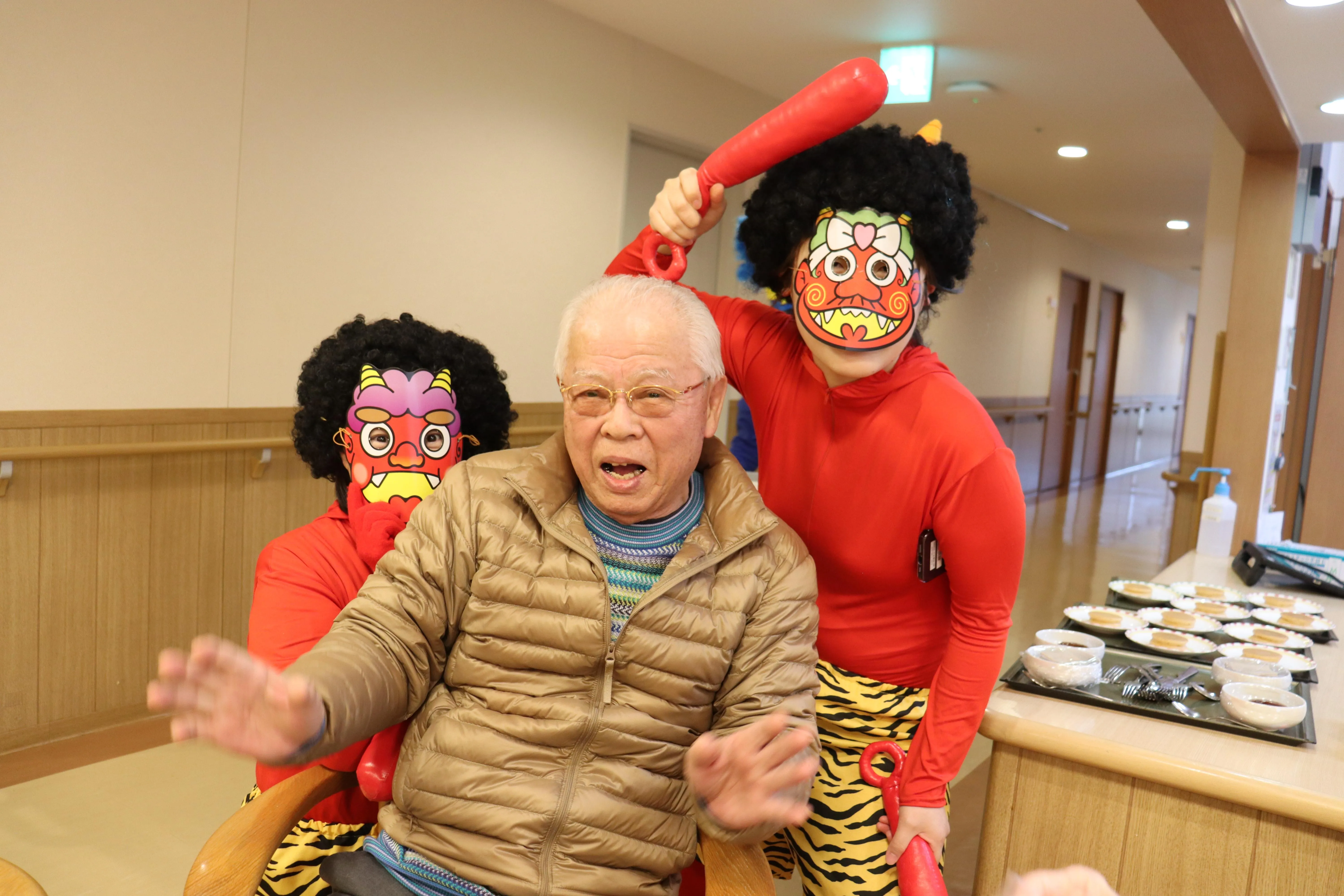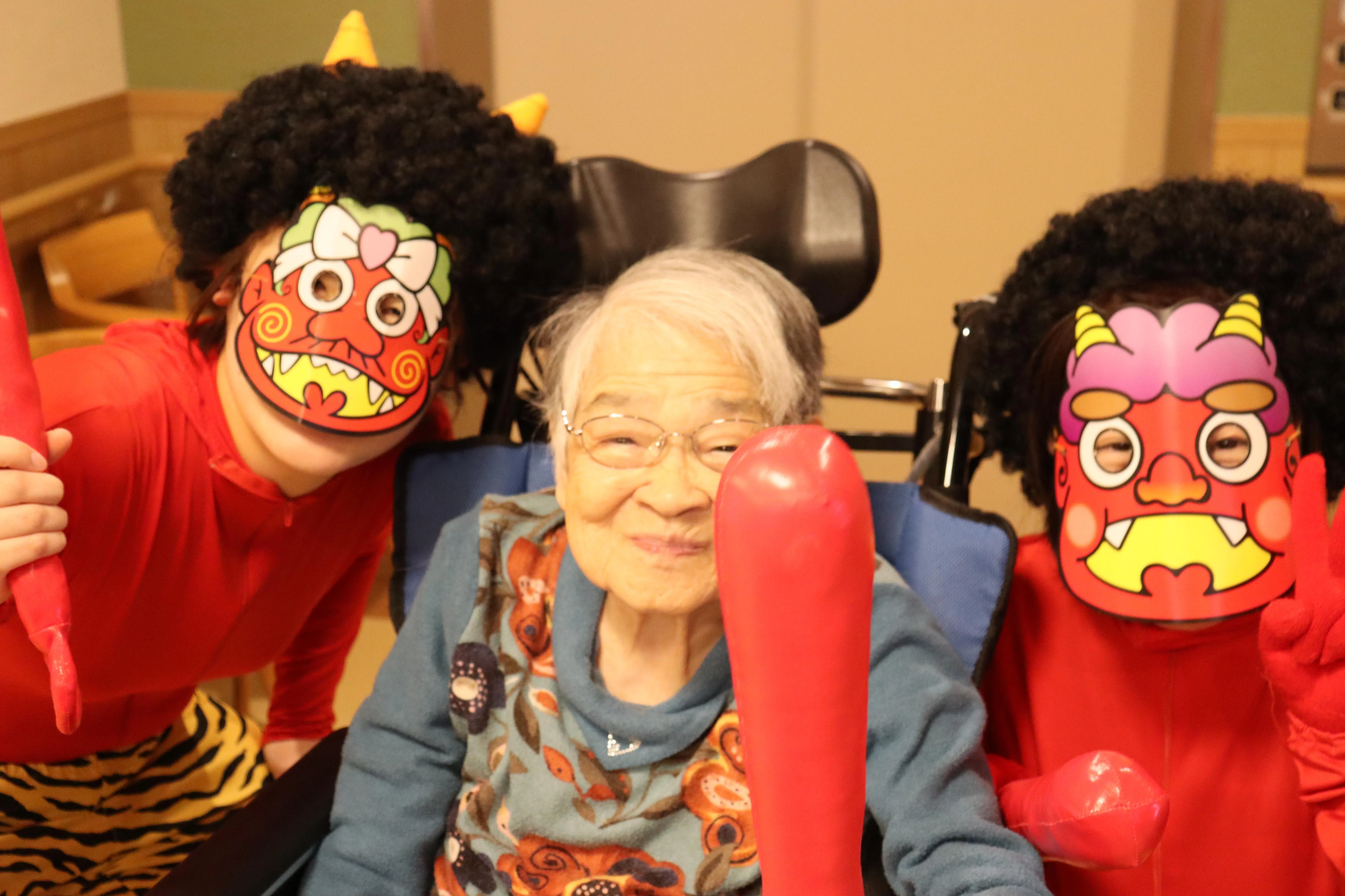 元気な掛け声とともに、今年も施設に鬼がやってきました。