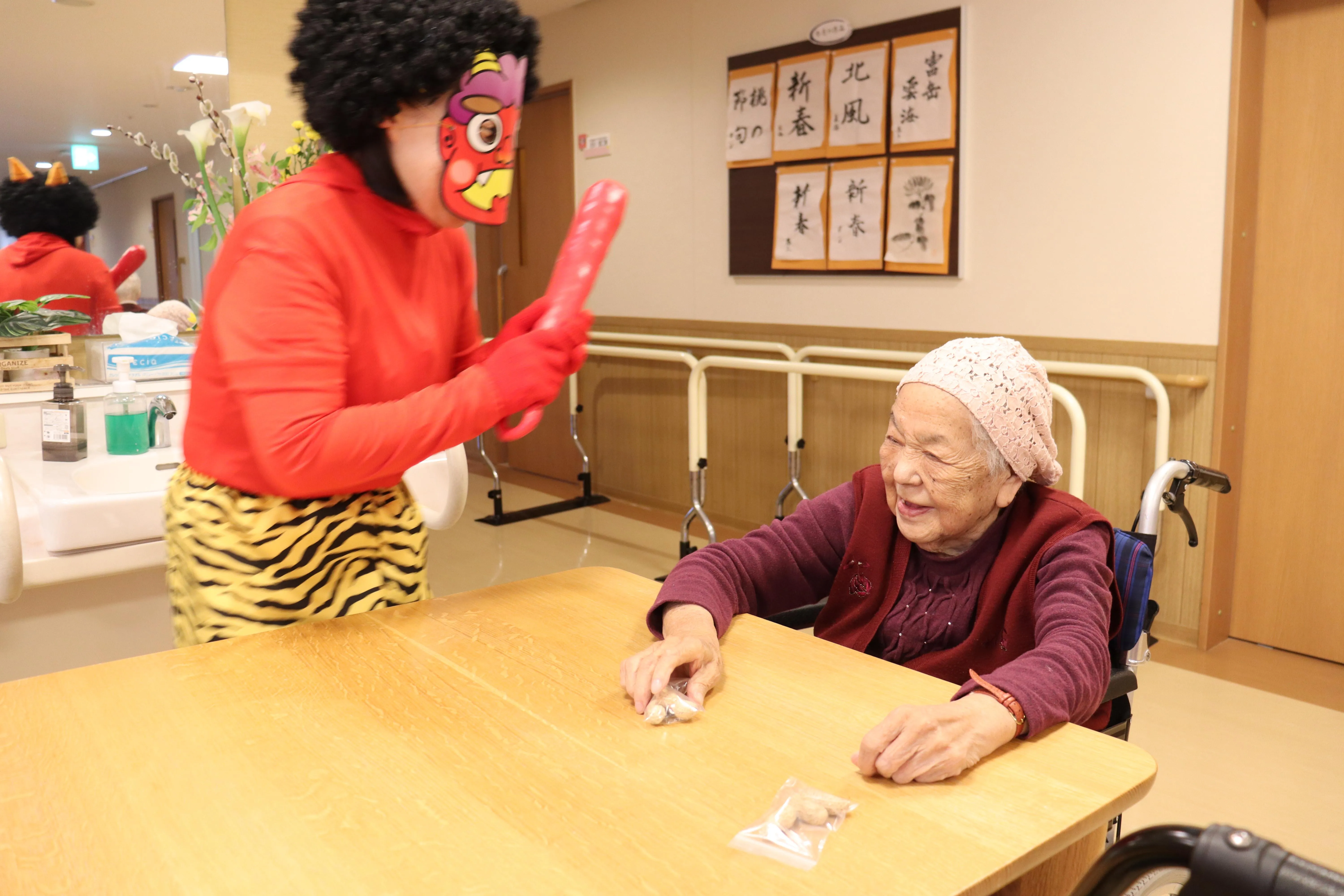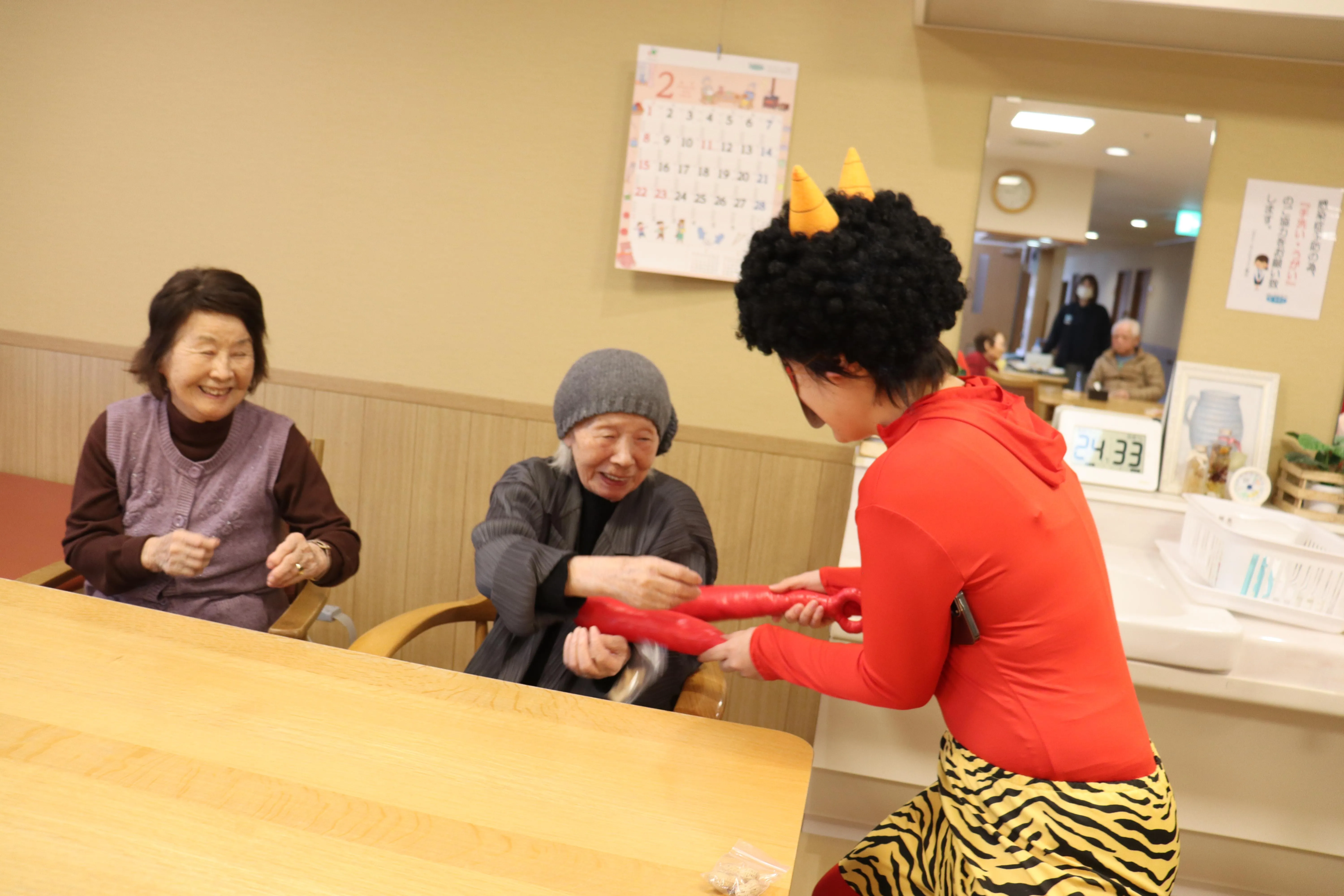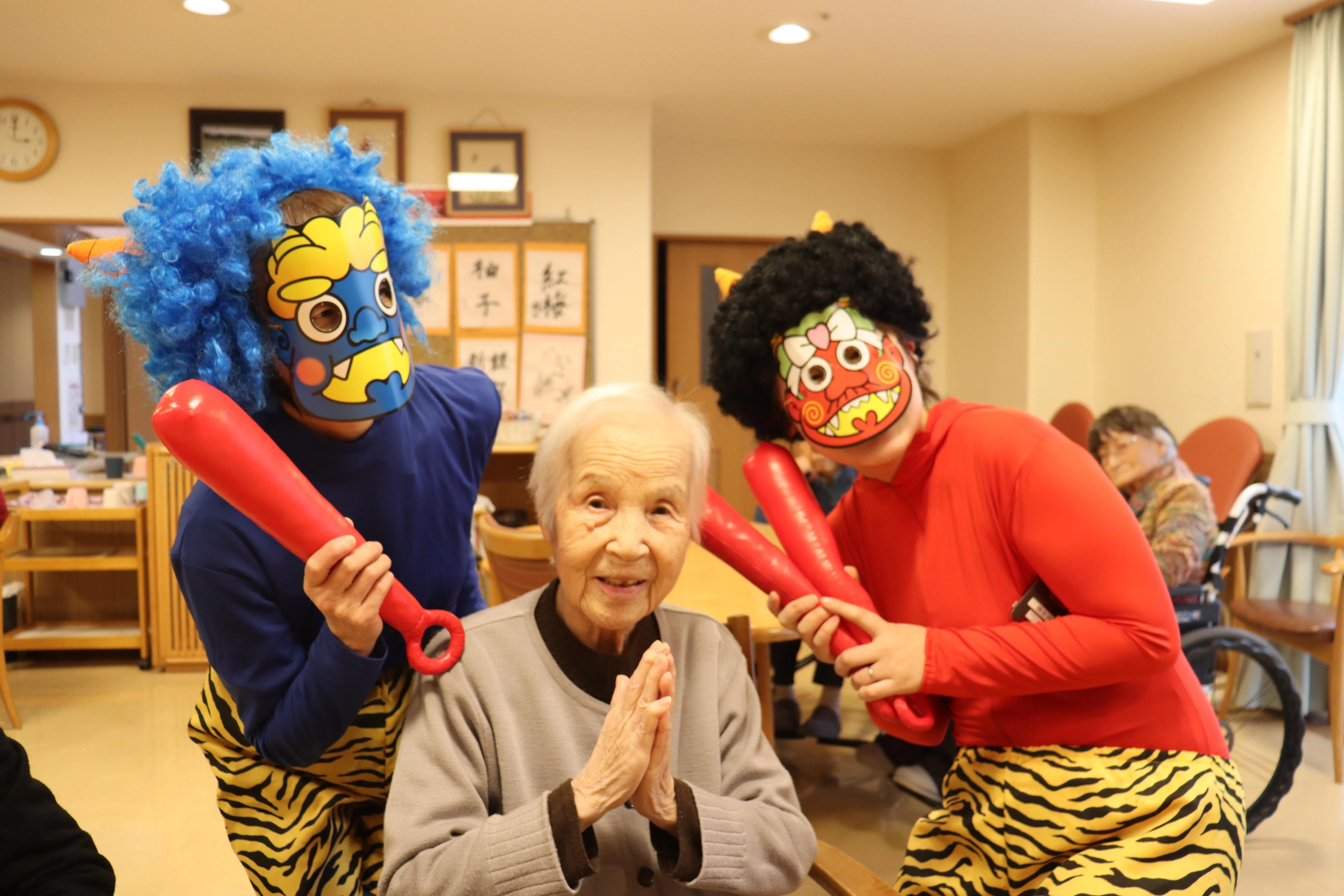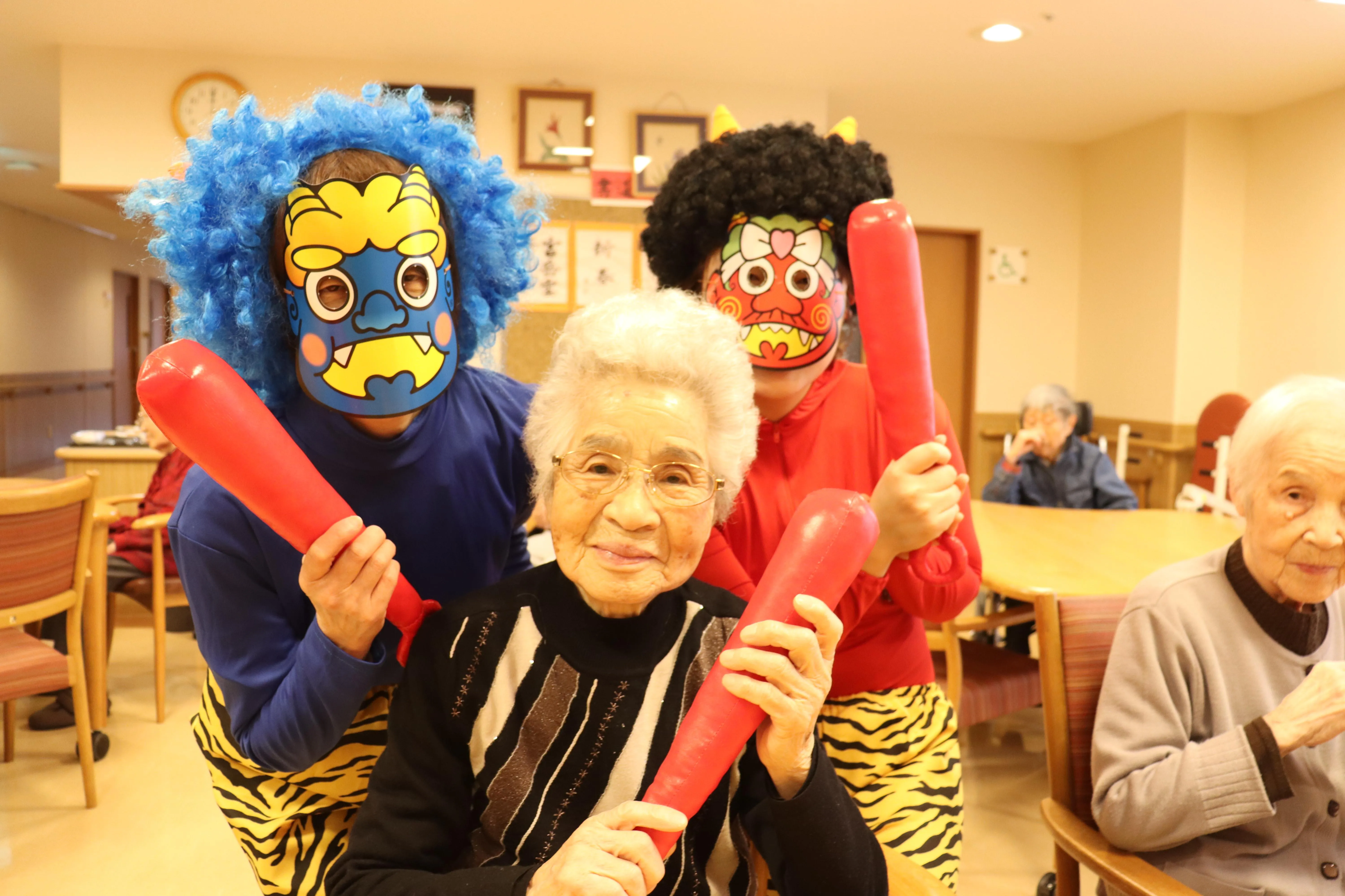 元気な掛け声とともに、今年も施設に鬼がやってきました。