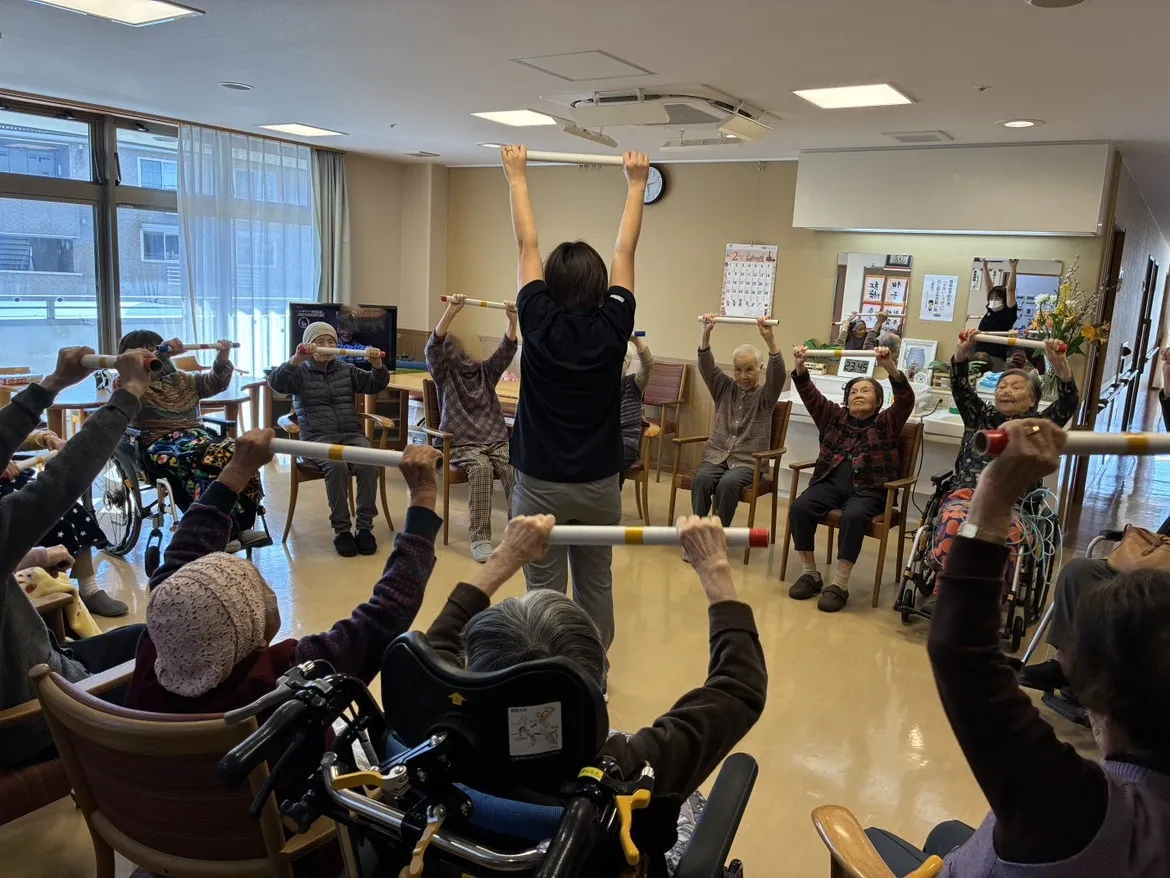 棒を使用した棒体操から始まり、