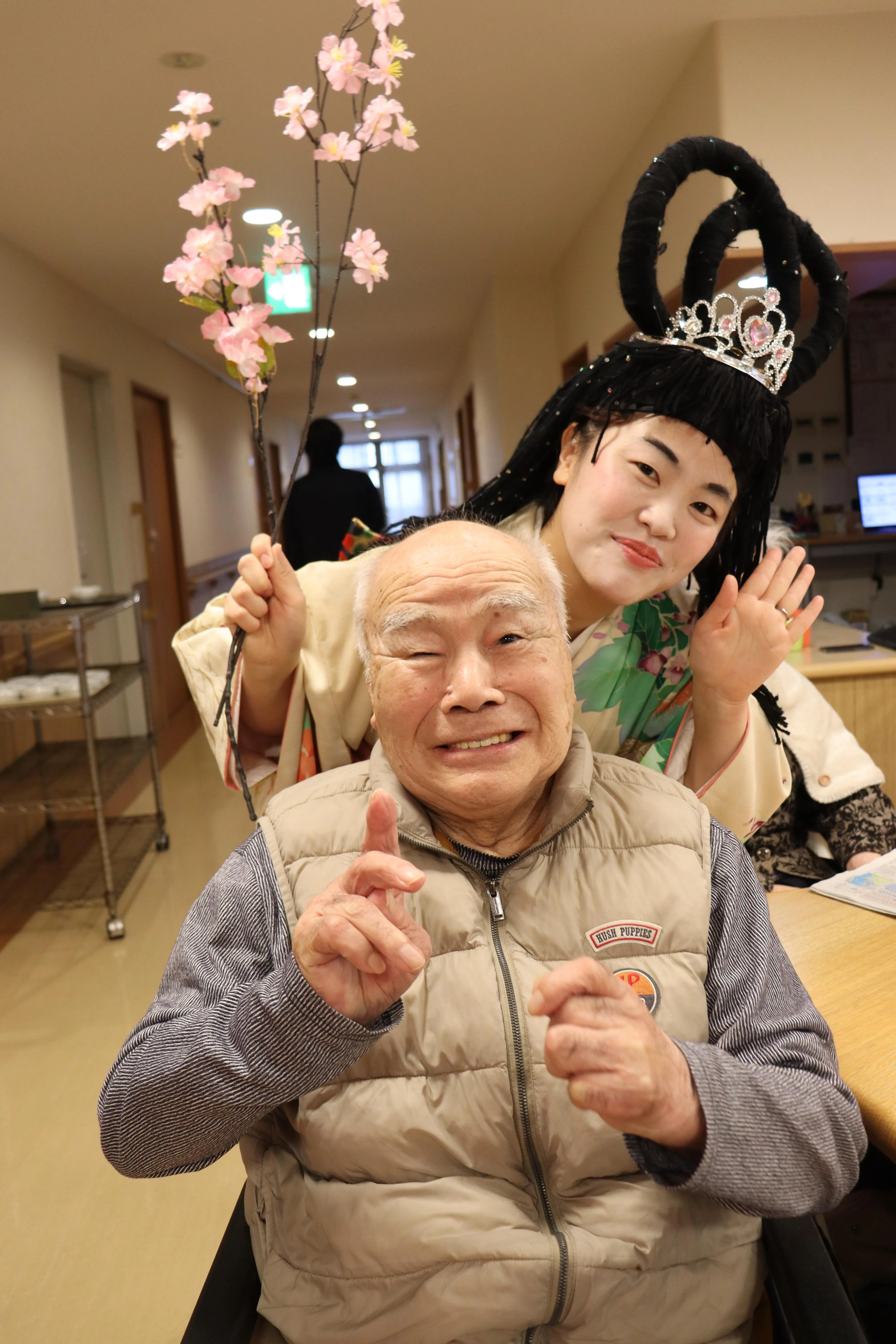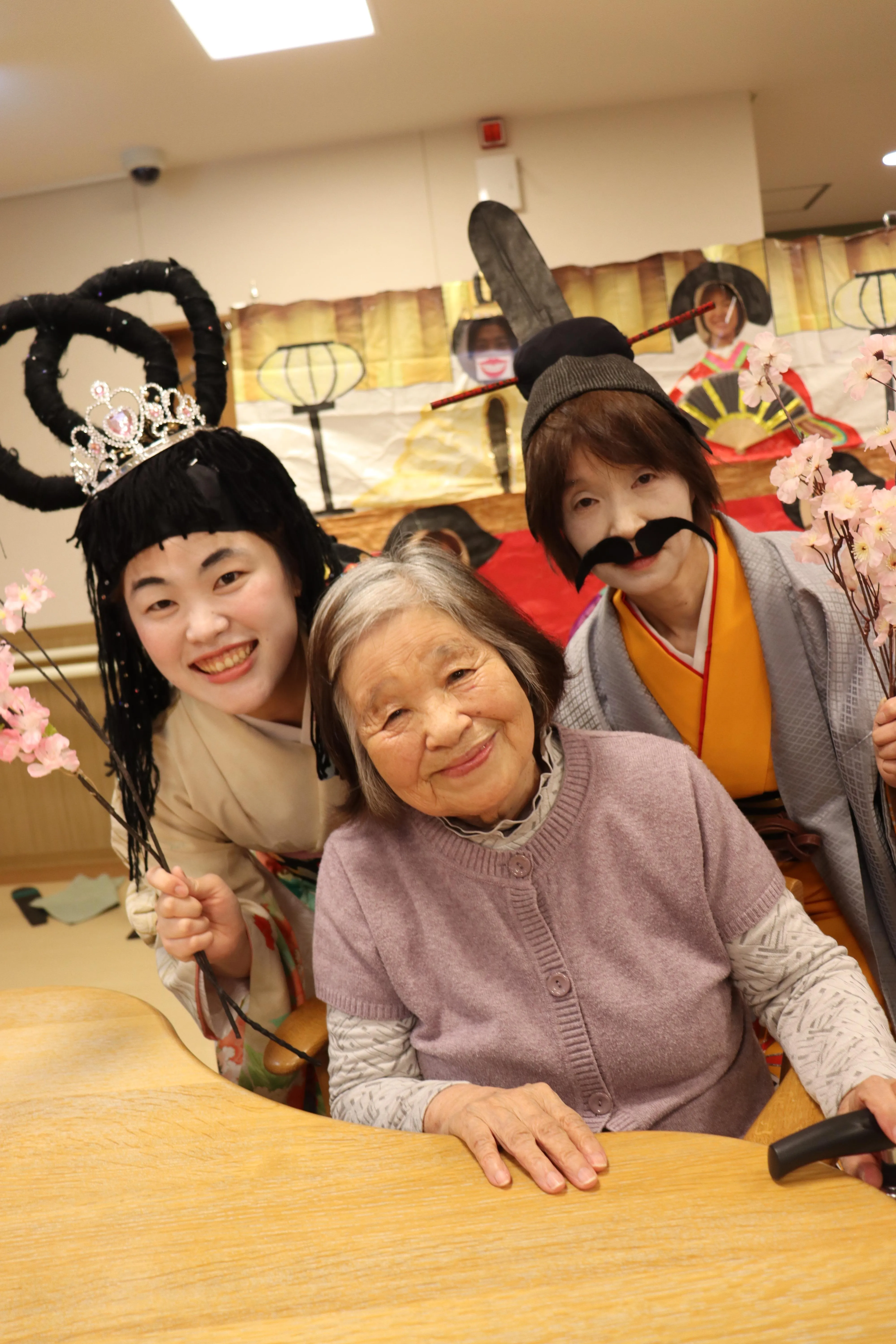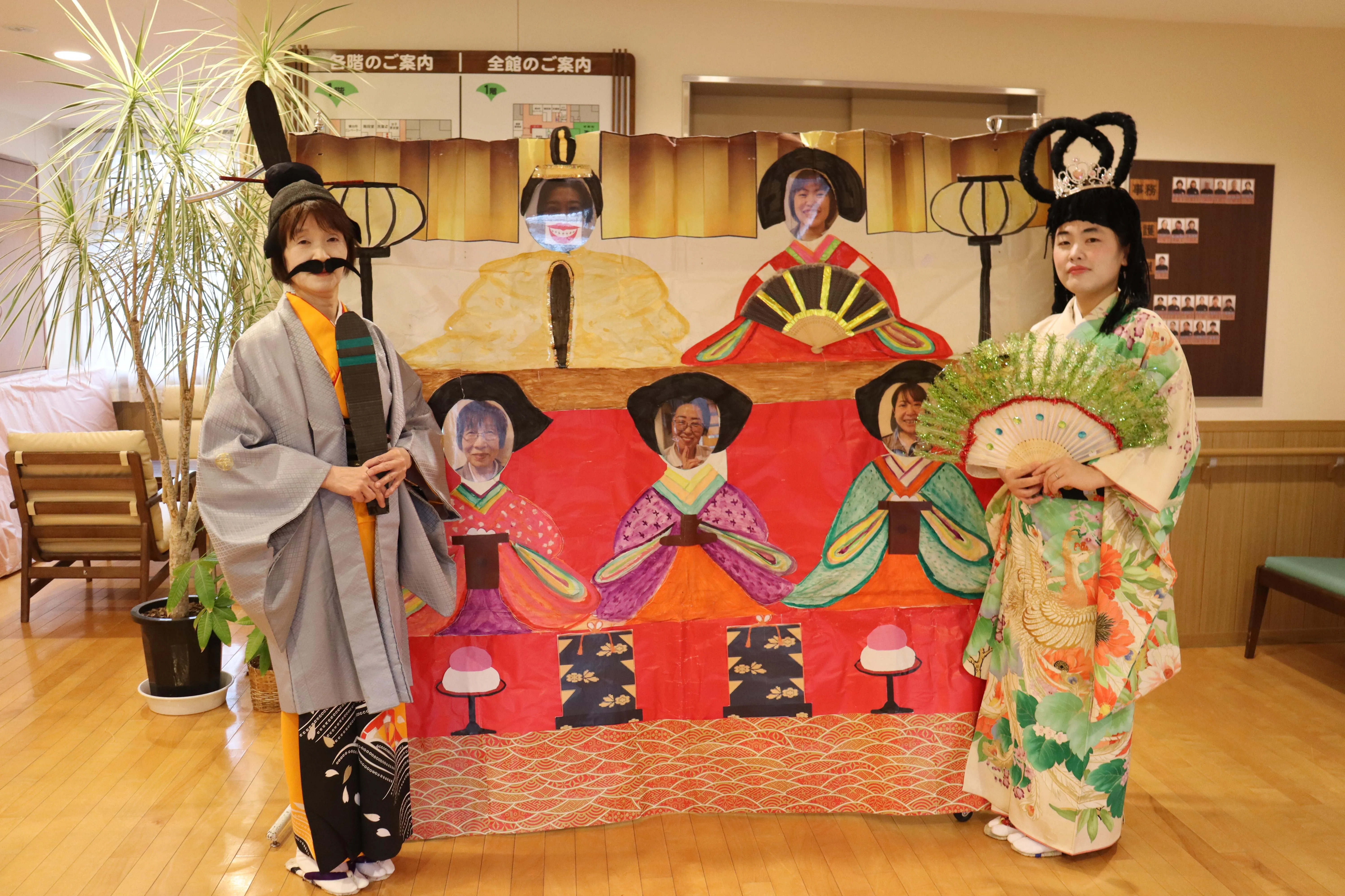 スタッフがお内裏様とお雛様になりきり、登場!