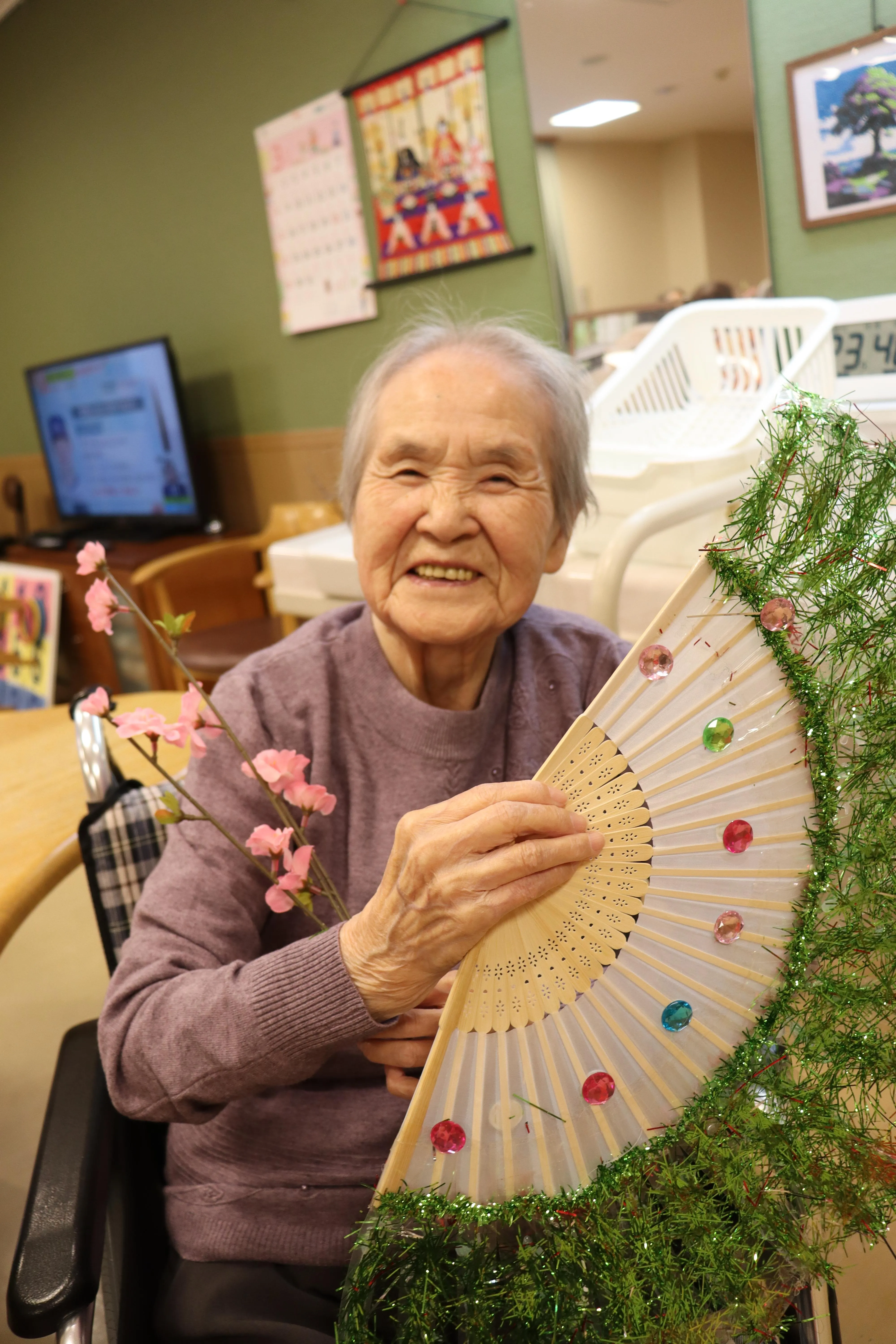 おやつの時間には、ひな祭りにちなんで温かい甘酒を提供。