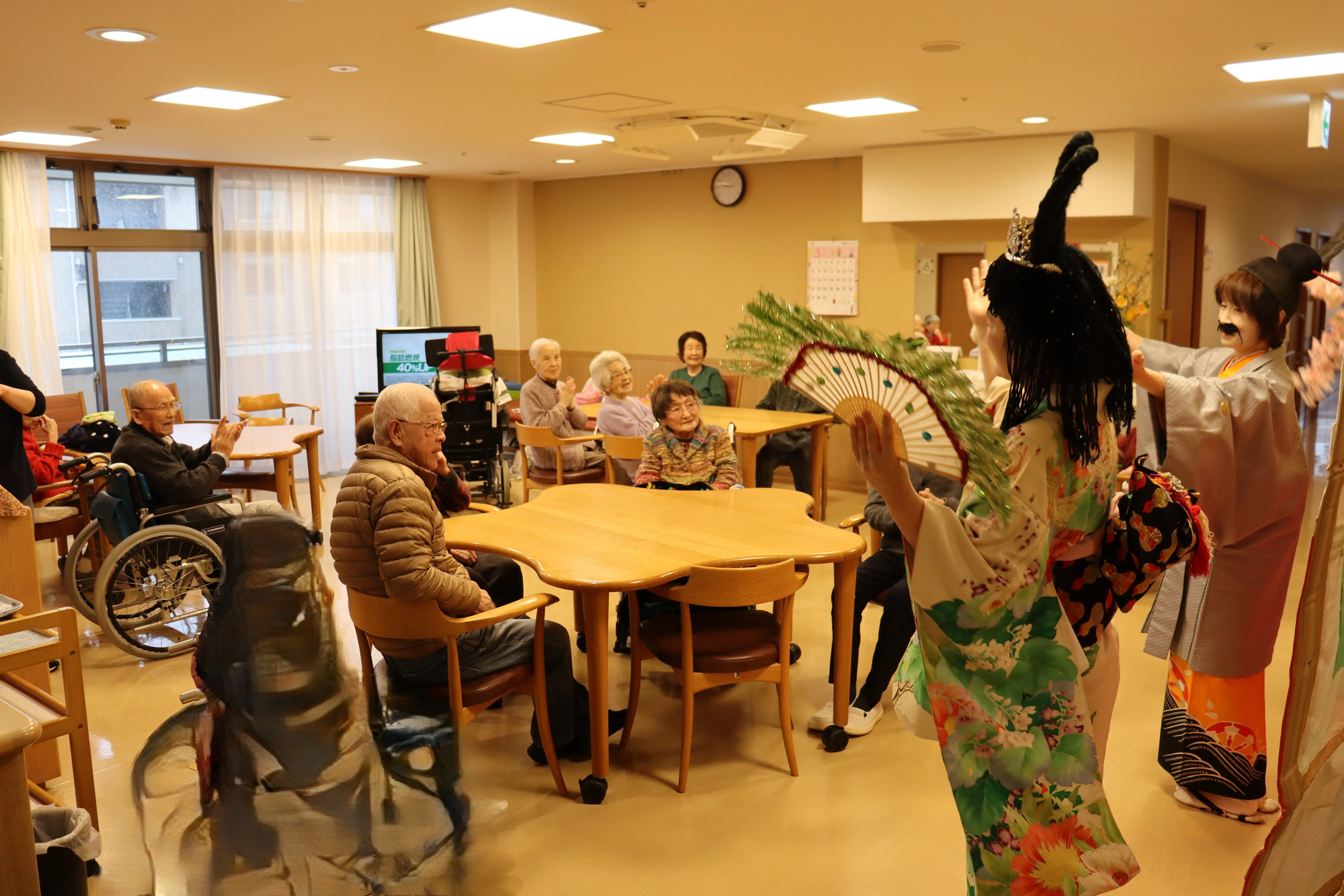 音楽に合わせて舞を披露し、会場からは笑い声や拍手が起こり、とても盛り上がりました。