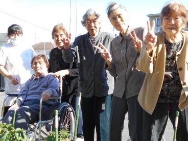 寒い季節も終わり、今日は天気に恵まれたこともあり、皆さんで畑の様子を見に行ったり、施設周囲の散歩をしました。