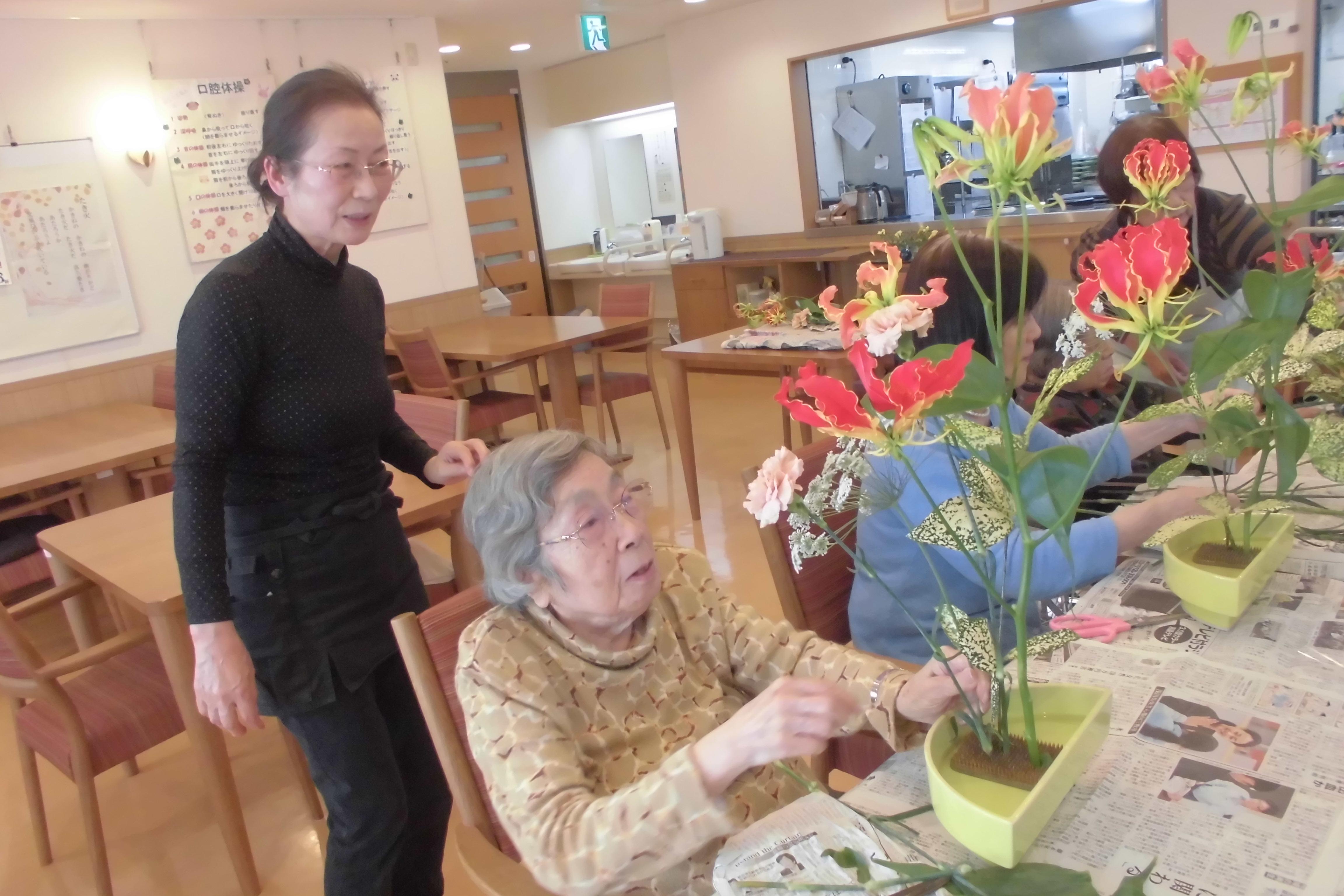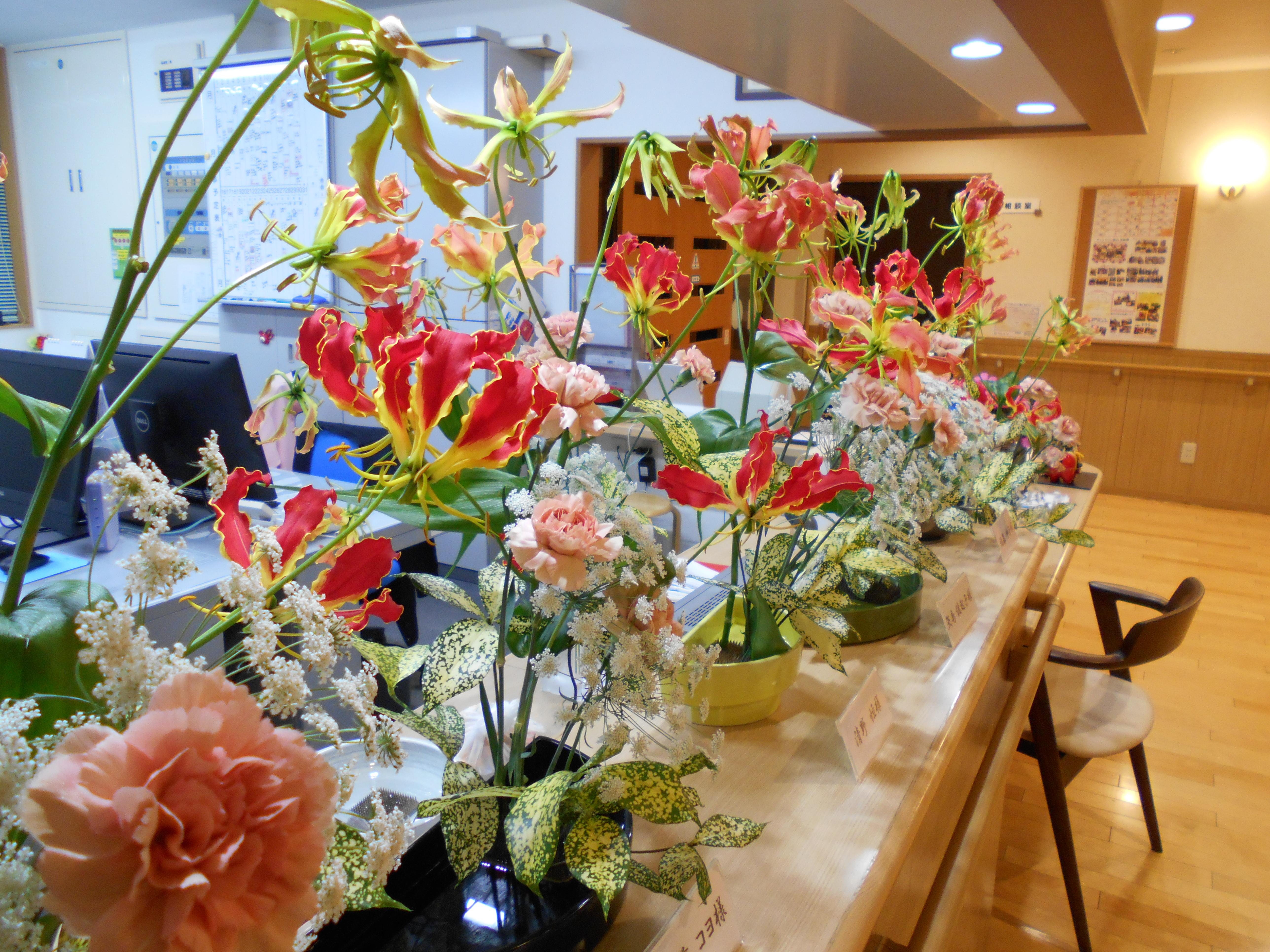 本当は皆さん待ちきれず生け始めたのがきっかけですが、現在も揃ったら始まるというのがツクイ・サンシャイン郡山流です。