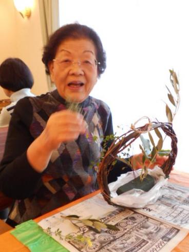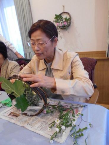 ツルの枝を綺麗に丸めるのは至難の業です、今回は職員が事前に巻いたものを使用しました。