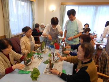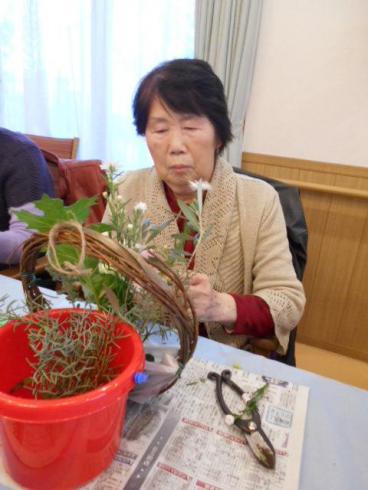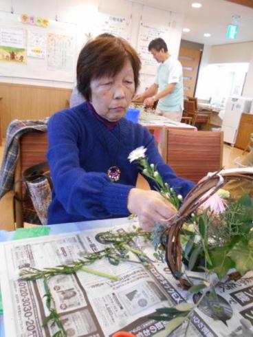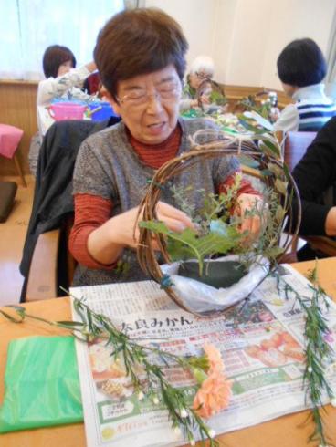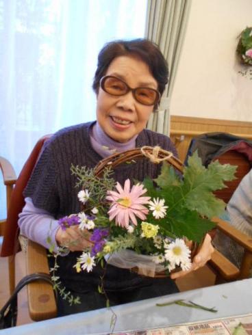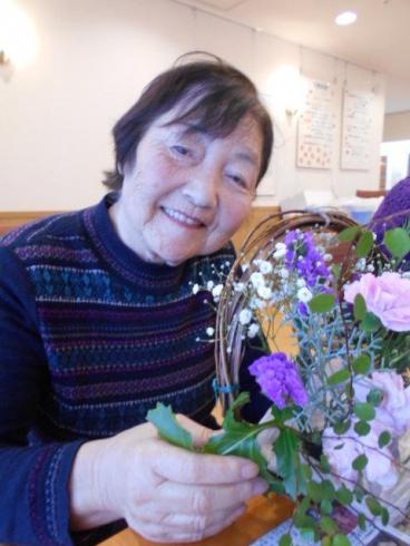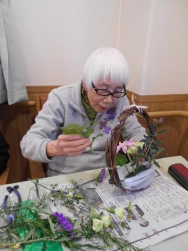 造花とは違う生き生きとした作品に仕上げるために、職員があちらこちらで探し回り、これはいいなぁという花を集めてまいりました。