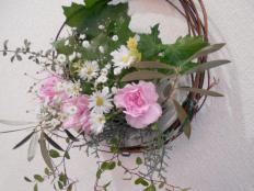話し合いの結果、リースの枠より下げて生けた方がきれいに見えるとのことでした。