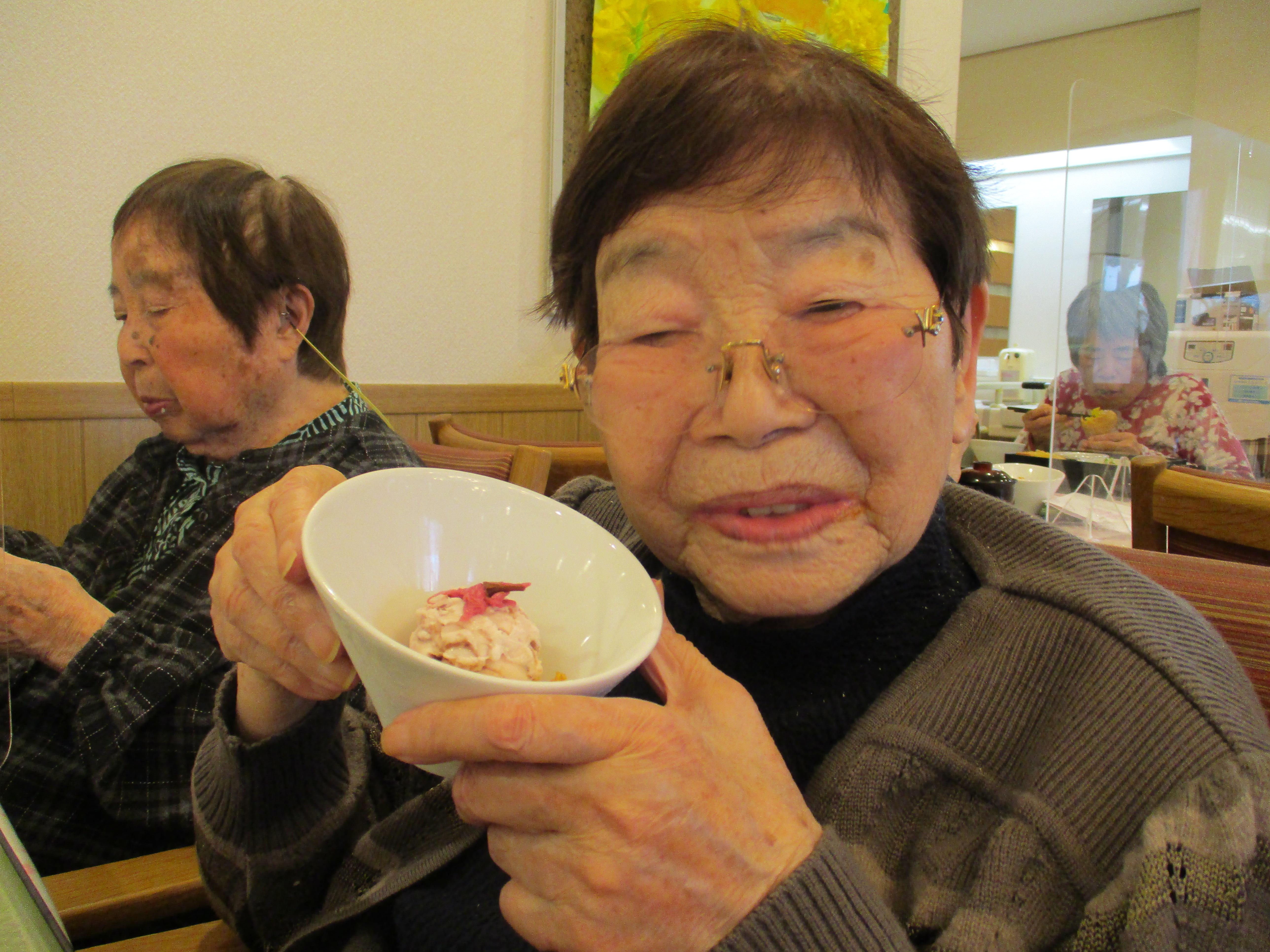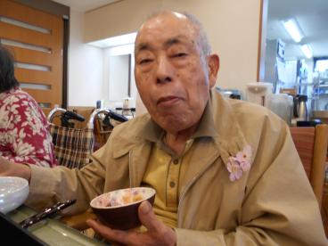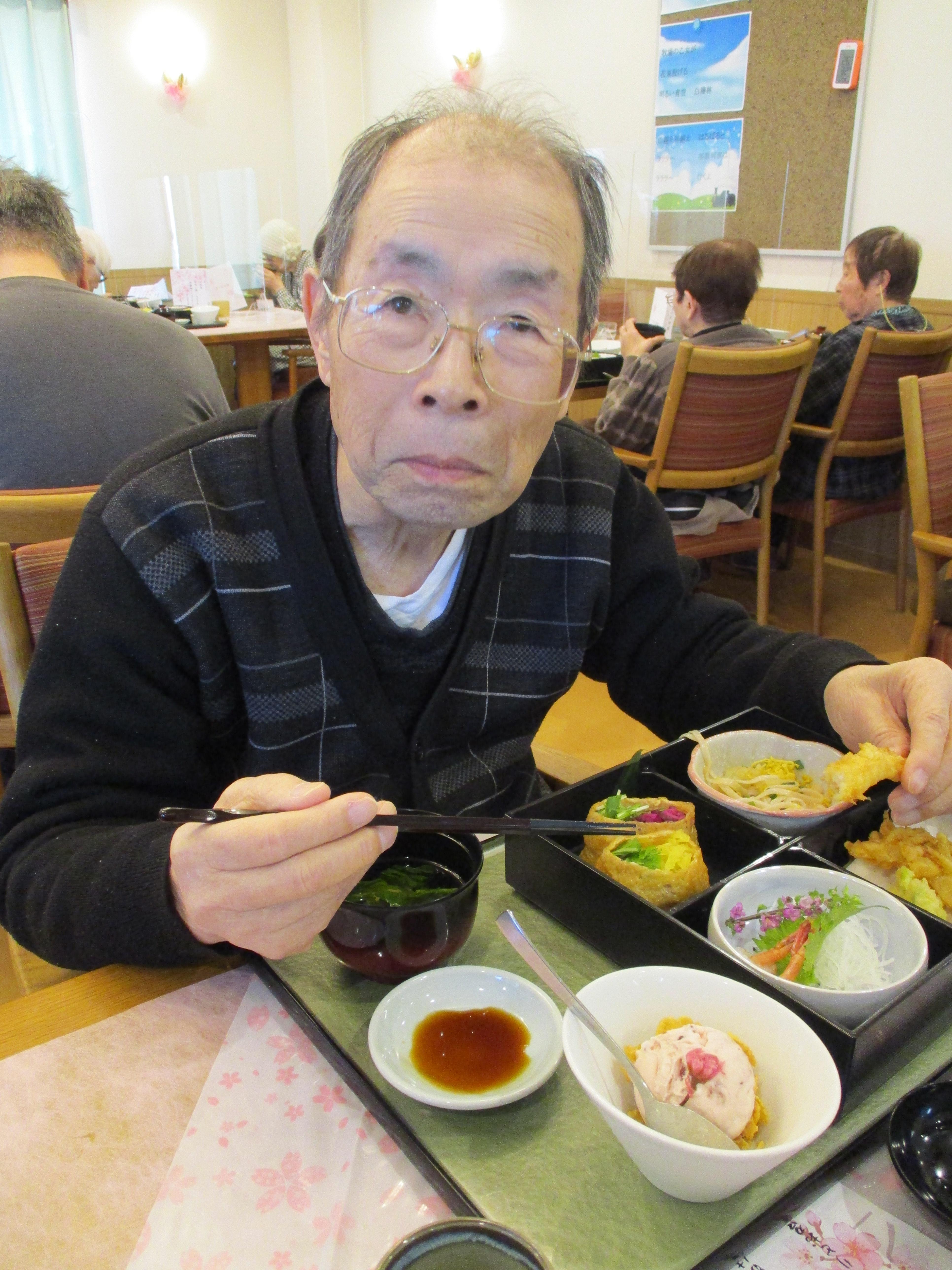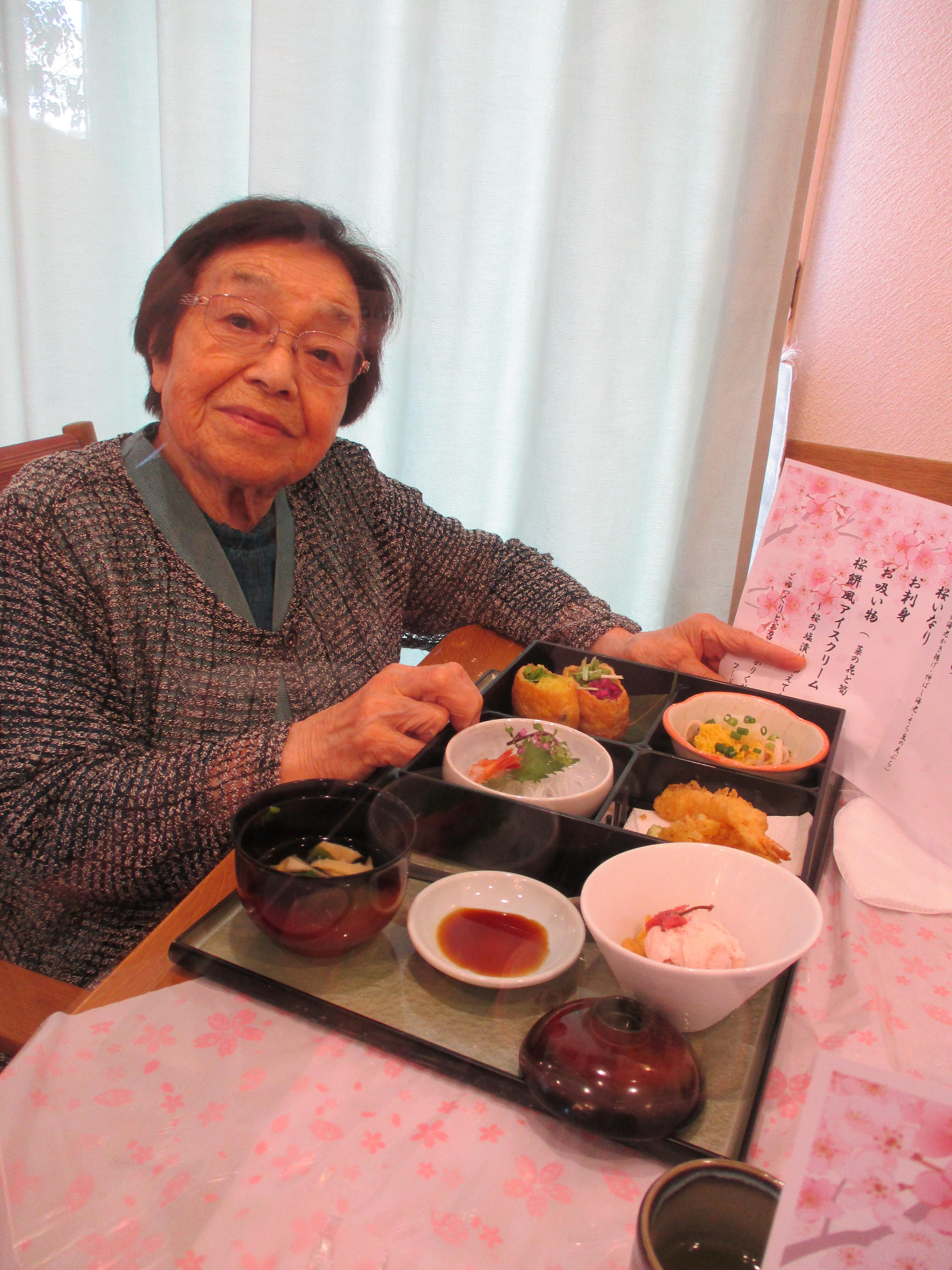 職員が事前に撮影した桜の名所をテレビで流しながら、昼食に春の桜御膳を召し上がっていただきました!