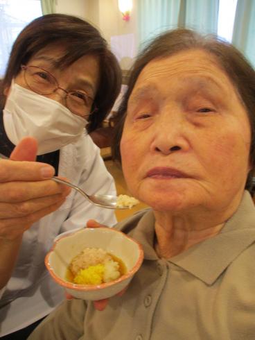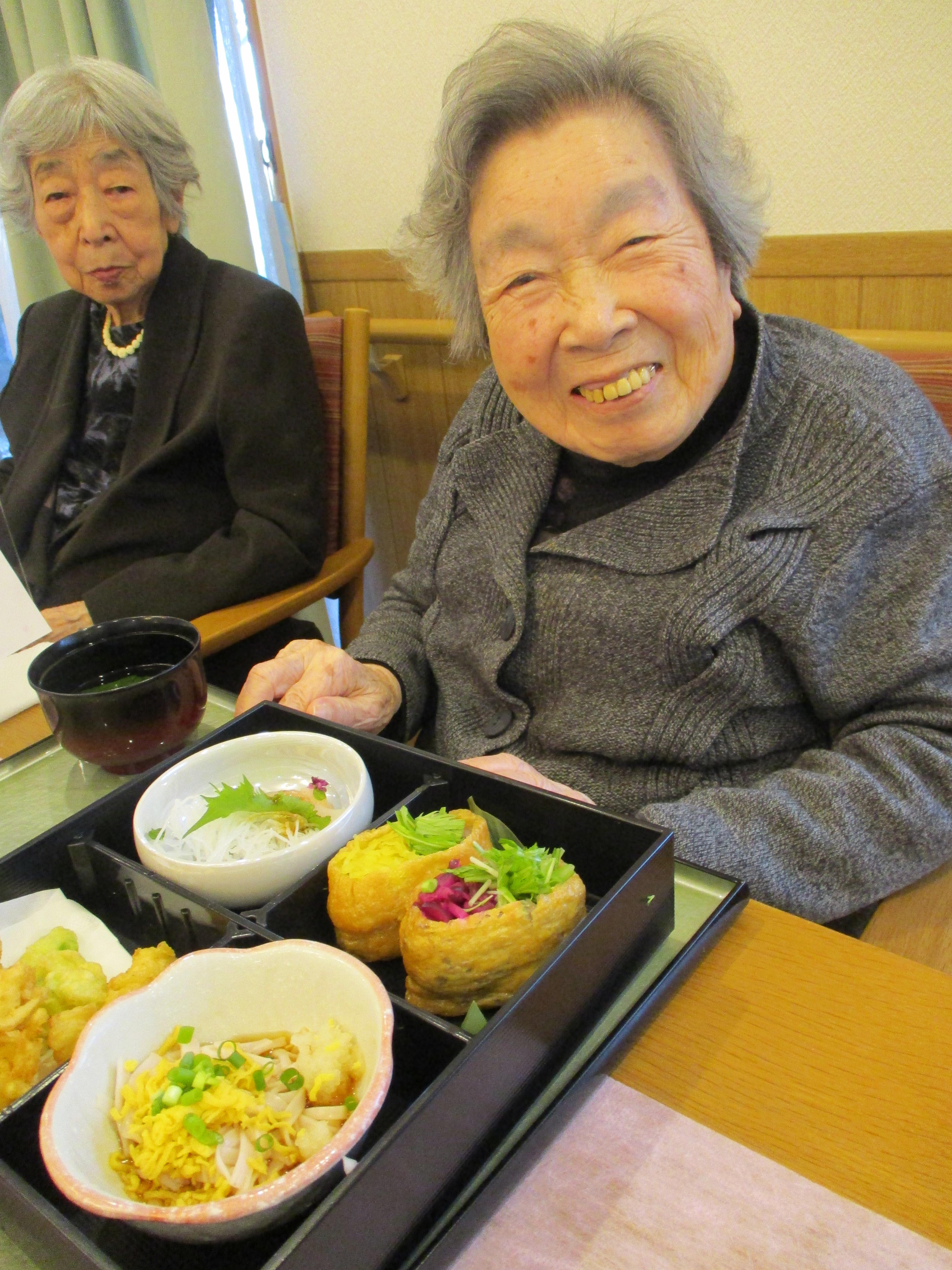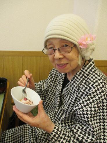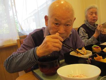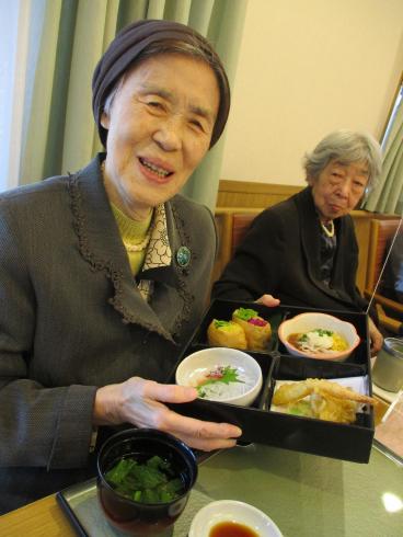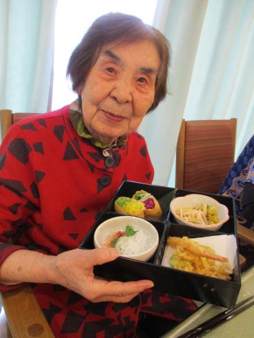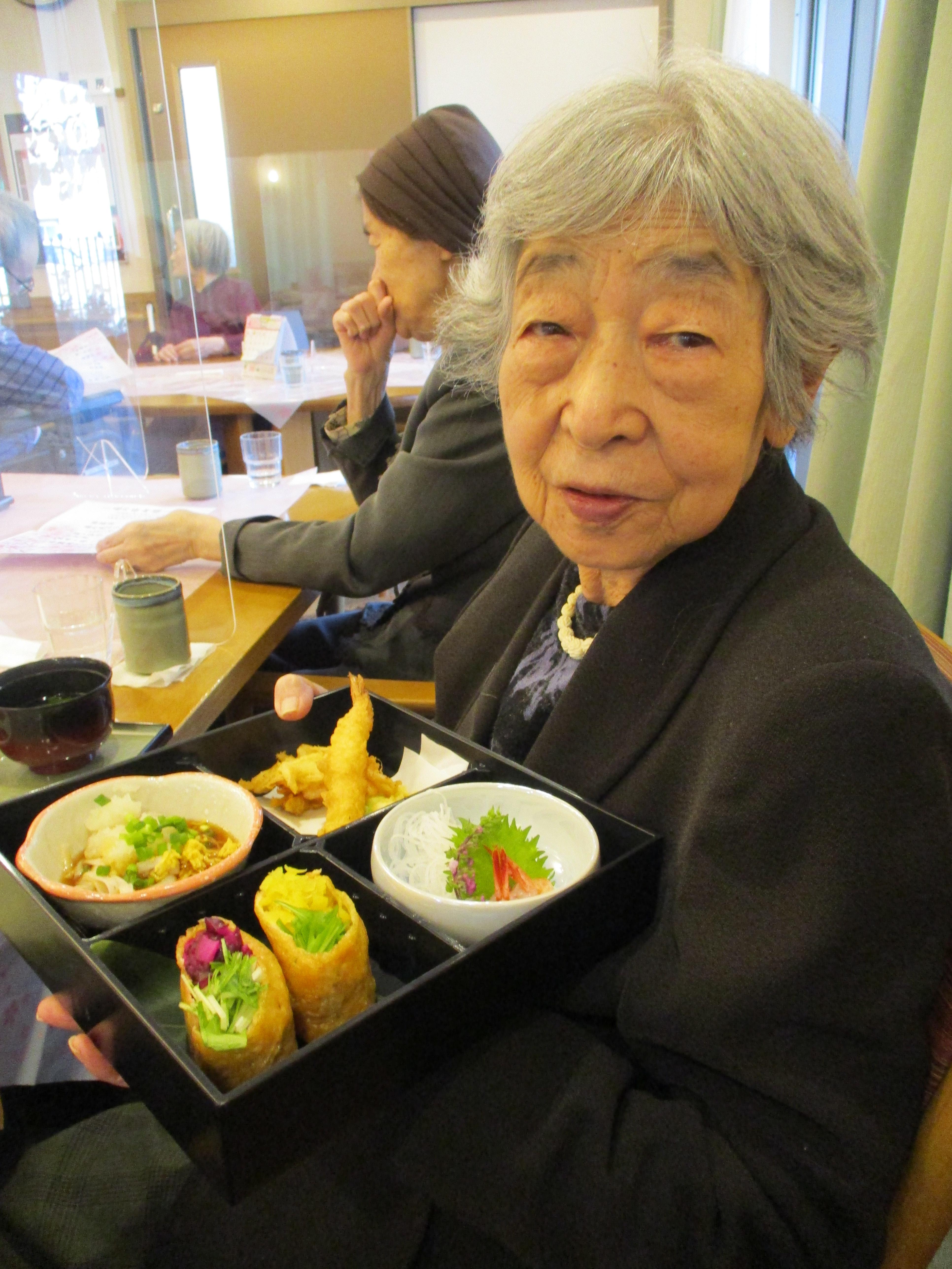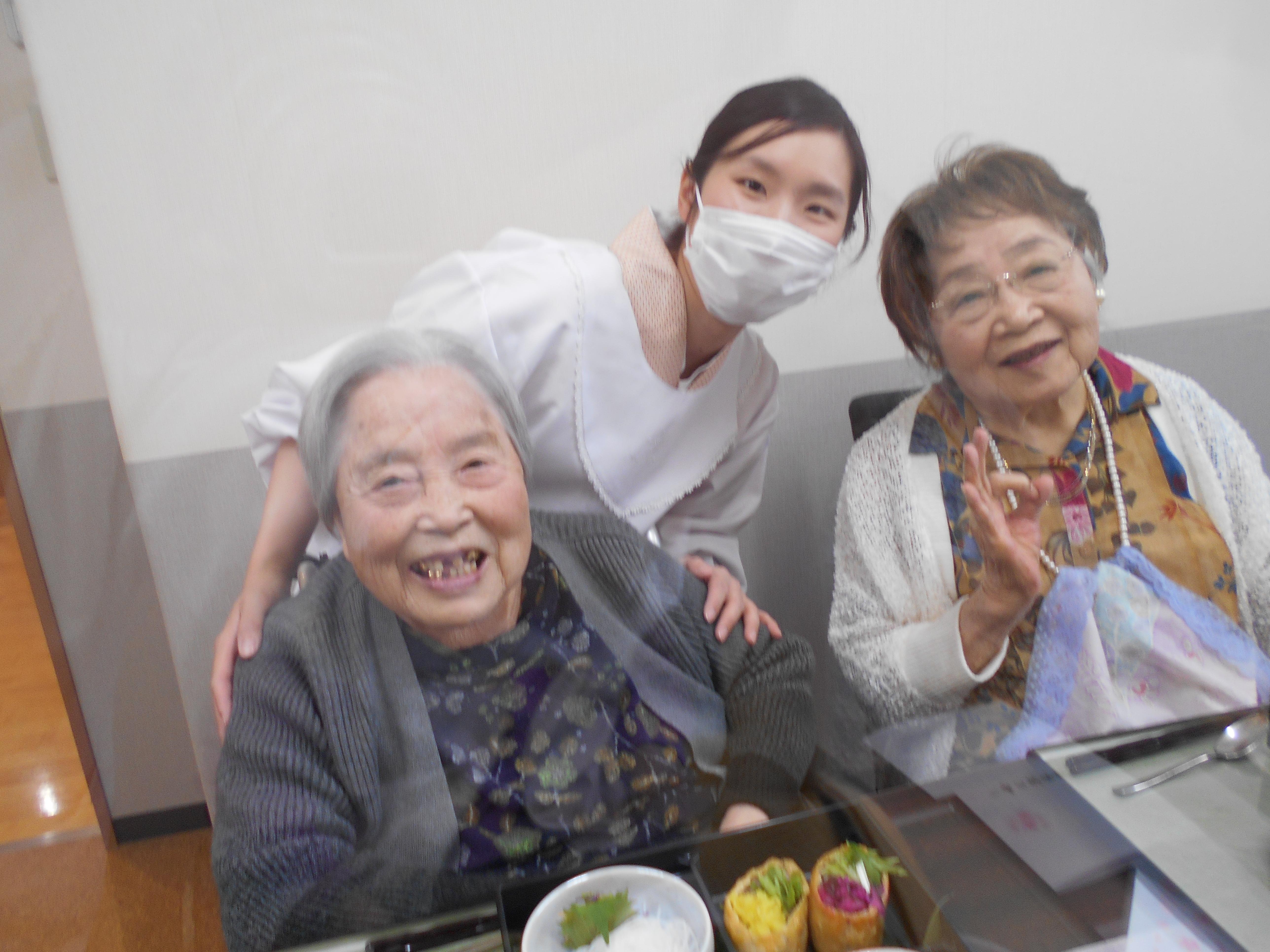 職員が事前に撮影した桜の名所をテレビで流しながら、昼食に春の桜御膳を召し上がっていただきました!