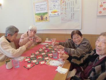 記念撮影が終わった後は、クリスマスメニューの昼食で乾杯して頂きました。