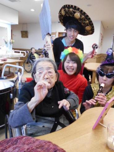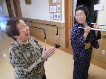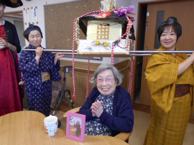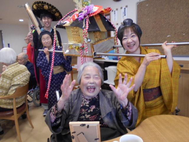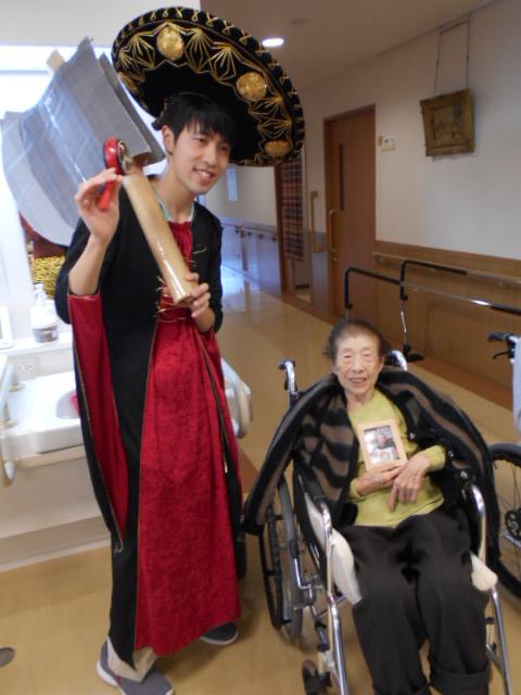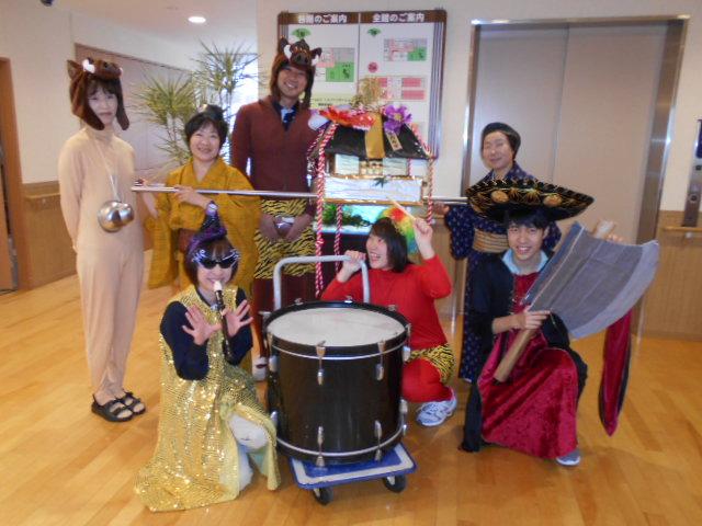 今日は皆様へのサプライズで、コスチュームに着替えた職員によるチンドン屋がチンドンチンドン音を鳴らしながら2階、3階を練り歩きました。