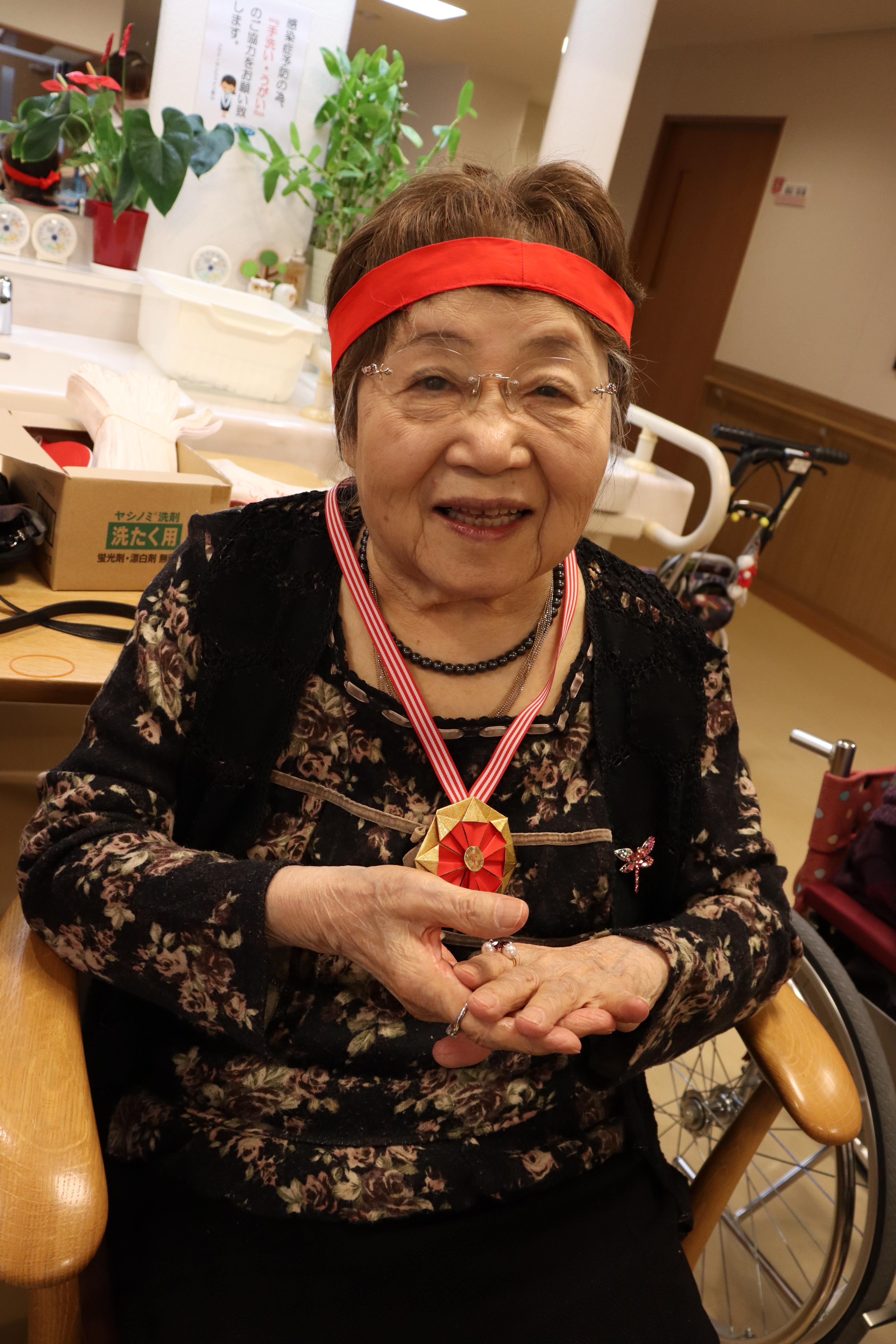 ミニ運動会を行いました!今年は各フロアに分かれて、安全に考慮し、座ったままできるプログラムを実施しました。競技が始まると皆様真剣に取り組まれ、白熱した戦いが繰り広げられました!勝利した赤組には金メダルを、惜しくも負けてしまった白組には銀メダルを授与しました!