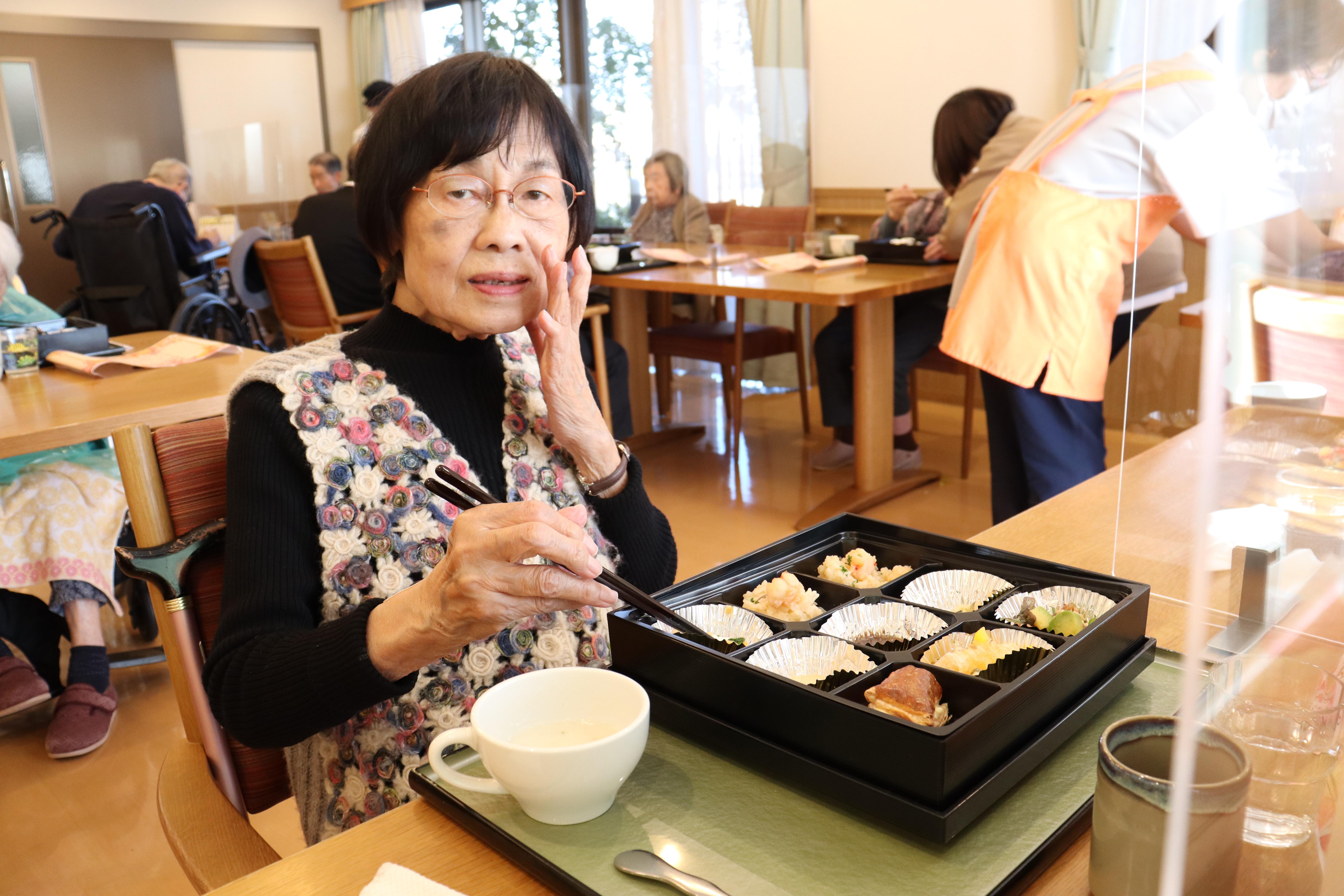 今月のプレミアム弁当は、フレンチの豪華お弁当でした!メニューは、真鯛のクリーム仕立て・カプレーゼ・牛タン赤ワイン煮・生ハムアボガドマリネ・海鮮ソテー・フライのアンチョビソース・海老のリゾット・柿のパイ焼きデザートでした。皆様、メニューを見ながら楽しまれていました!