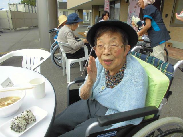 天気にも恵まれ、秋空の下屋外に特設会場を用意し、気持ちよく昼食をとって頂きました。