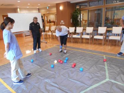 ジャックボールと呼ばれる白いボールに、赤・青それぞれ6球ずつのボールを投げたり、転がしたり、他のボールに当てるなど、いかに近づけるかを競うのです。
