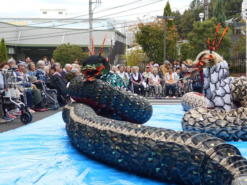 迫力溢れる太鼓の音に誘われるように、大きな龍があらわれました!
